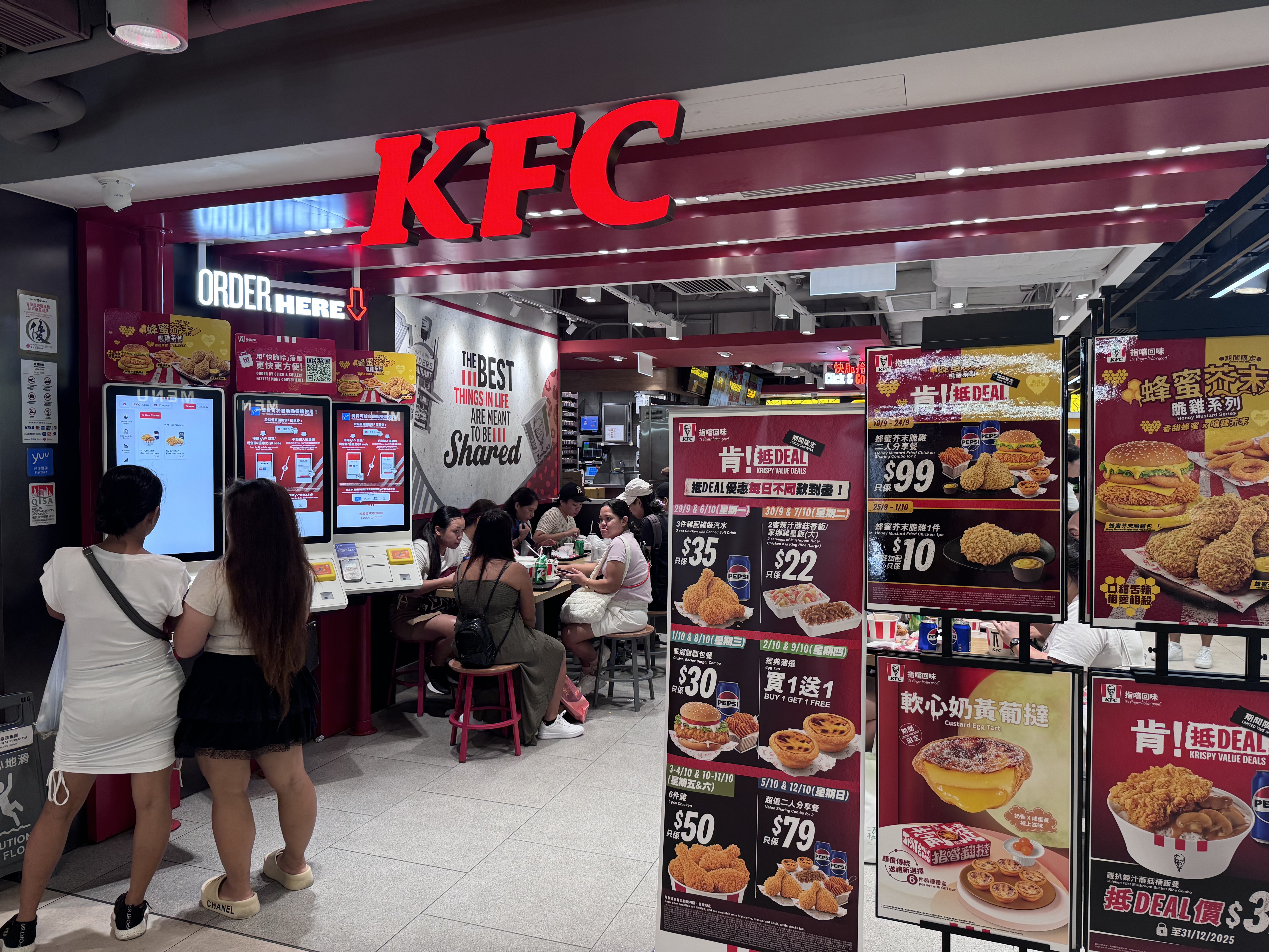 記者嘗試於金鐘海富中心的KFC自助點餐機選購今日的優惠套餐「家鄉雞腿包餐」,但發現價格並非宣傳所寫的30元,而是49元,詢問店內工作人員得到答覆指,需於點餐台人工下單,而「10蚊雞」活動需於KFC應用程序中使用優惠券下單。