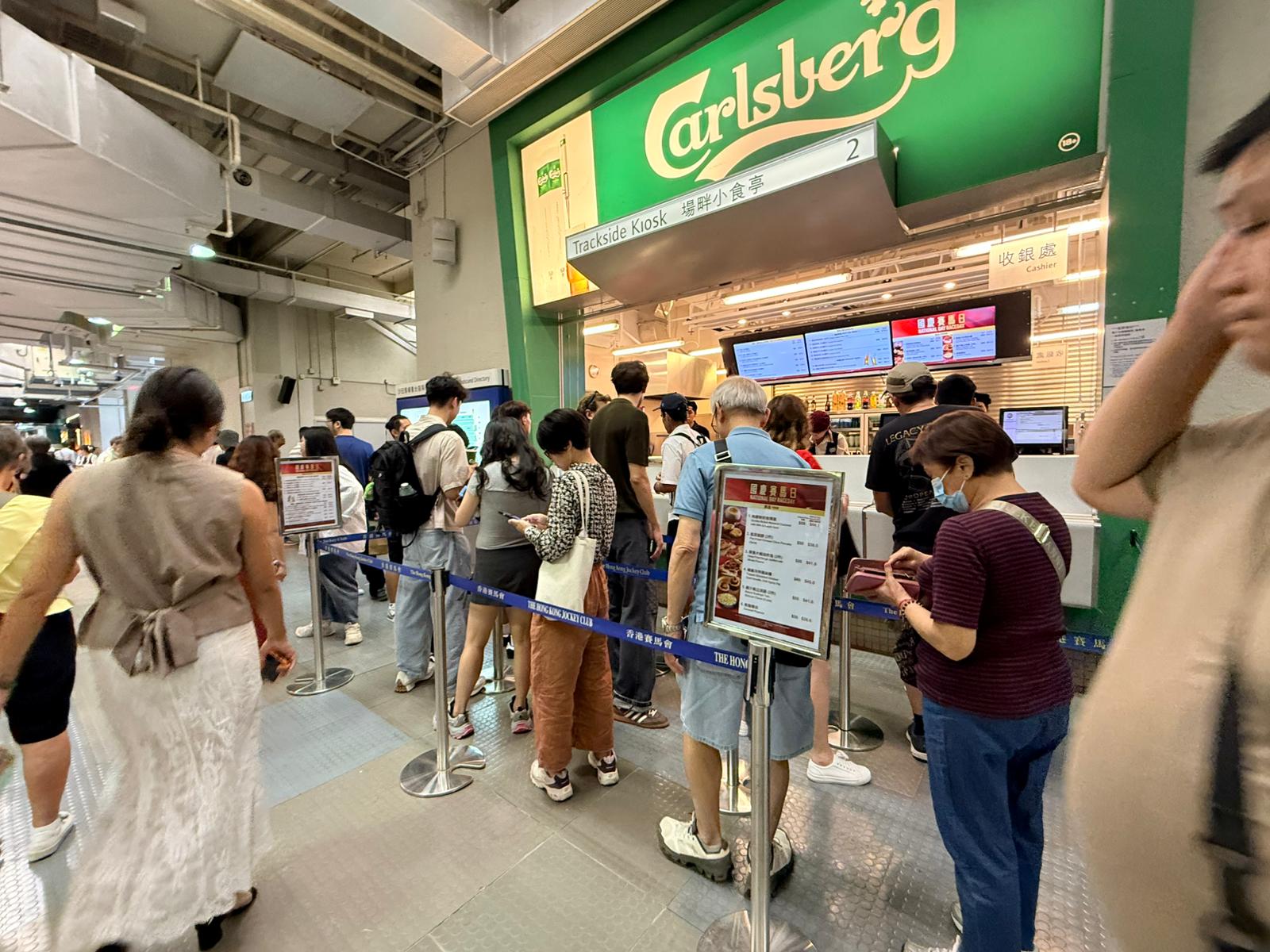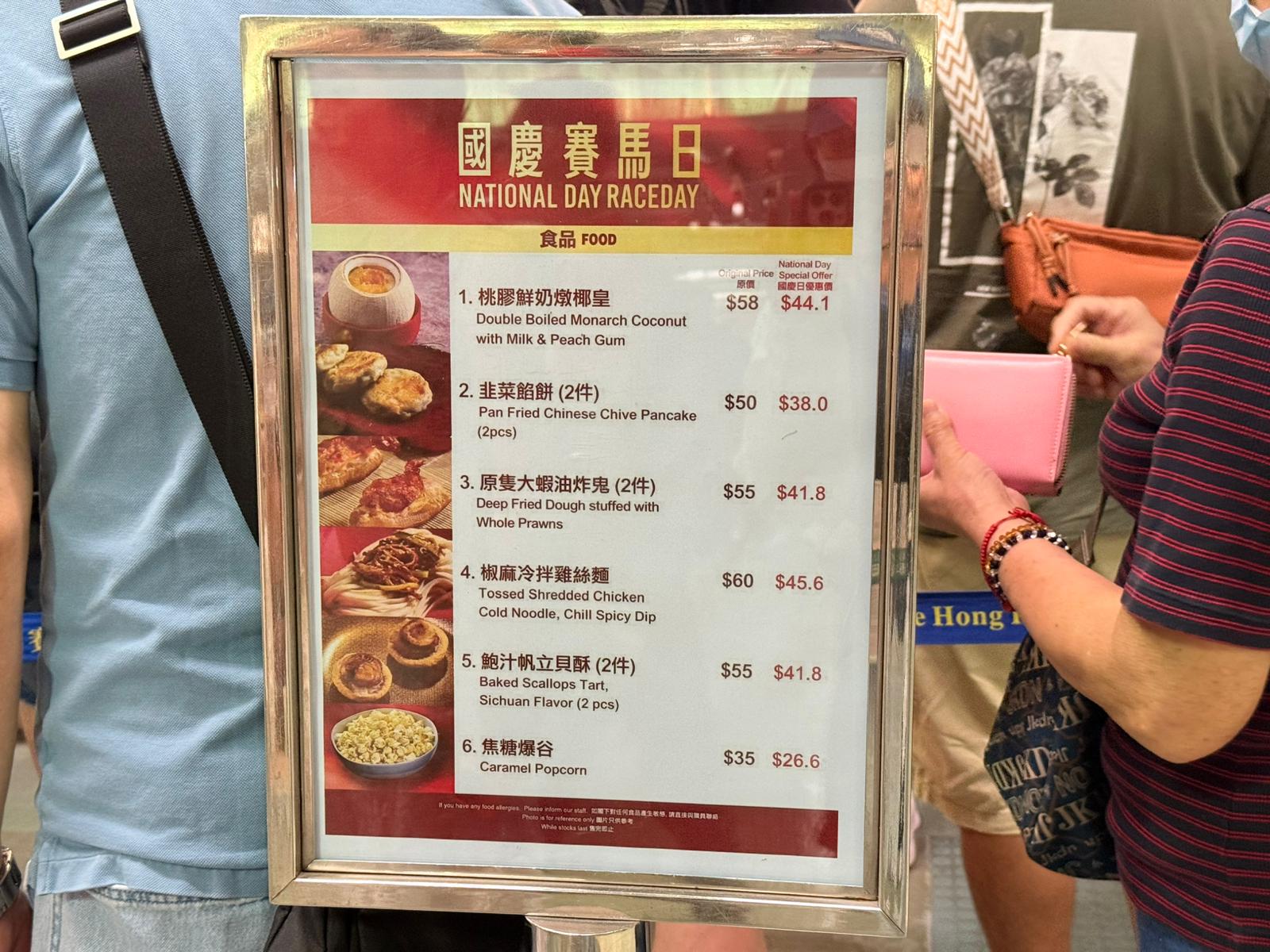 此外,沙田馬場的部分餐廳推出指定套餐七六折優惠,「2號場畔小食亭」推出多款特色主題美食和國慶優惠,記者留意到小食亭前大排長龍,眾多市民稱讚優惠活動,認為這讓今日觀賽體驗更充實。
