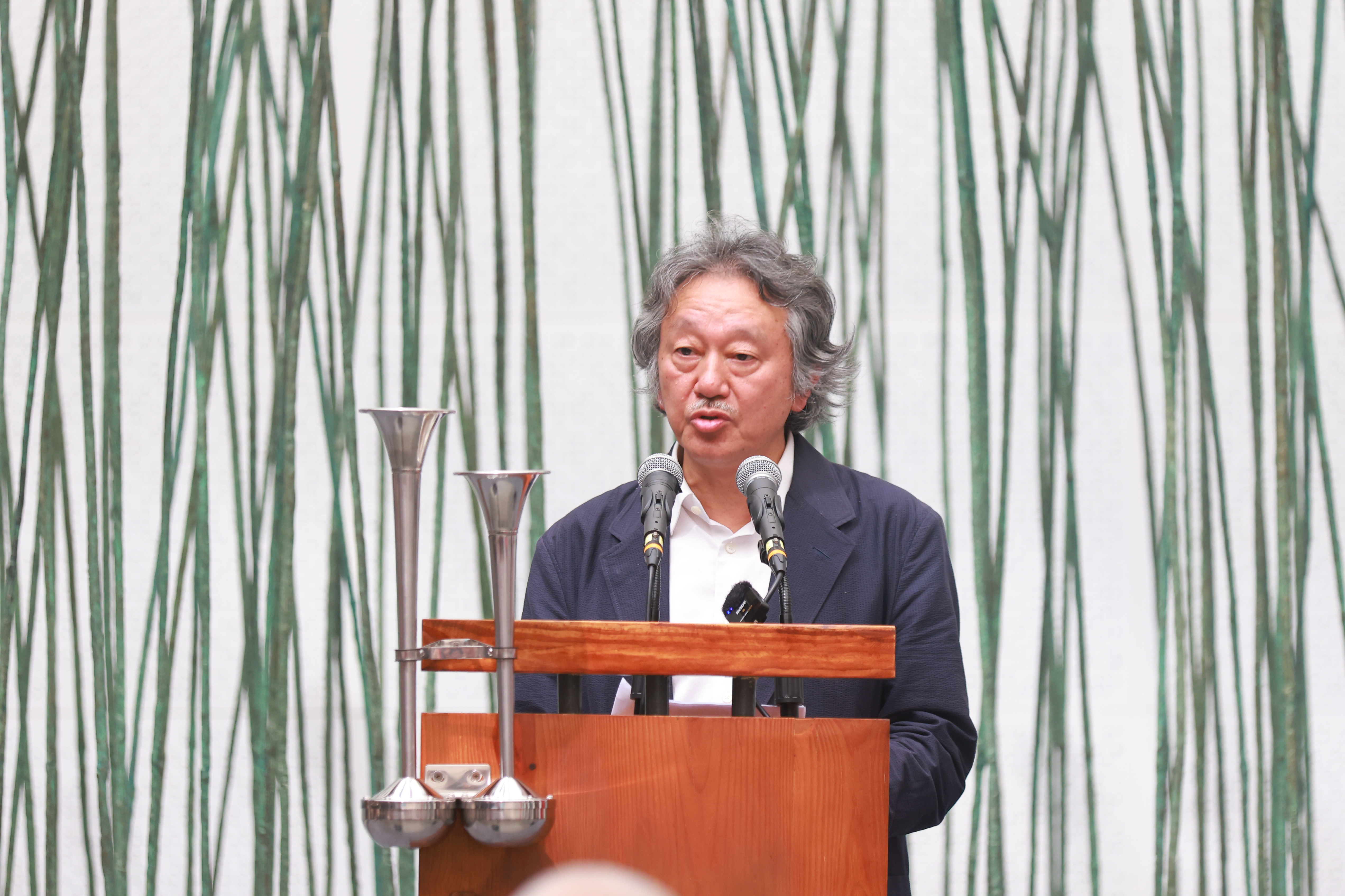寧波市文聯主席楊勁回顧寧波美術館建館的二十年:從美術館立項開始,許江主席就參與和推動了建築師的選擇、設計方案的完善等諸多關鍵環節,在隨後的二十年中,持續為其發展注入思想與方向性的力量。許江主席不僅僅是院長、畫家,更是一位藝術的布道者、一位慷慨的詩人。展覽所呈現的「山」和「葵」已不是具象的存在,而是思想的激越、精神的突圍;所謂「仰」,是一種精神向度,一種超越個體局限、投奔高遠理想的文人態度,這種「仰山」精神,深深感染、打動並啟迪着每一位觀者。