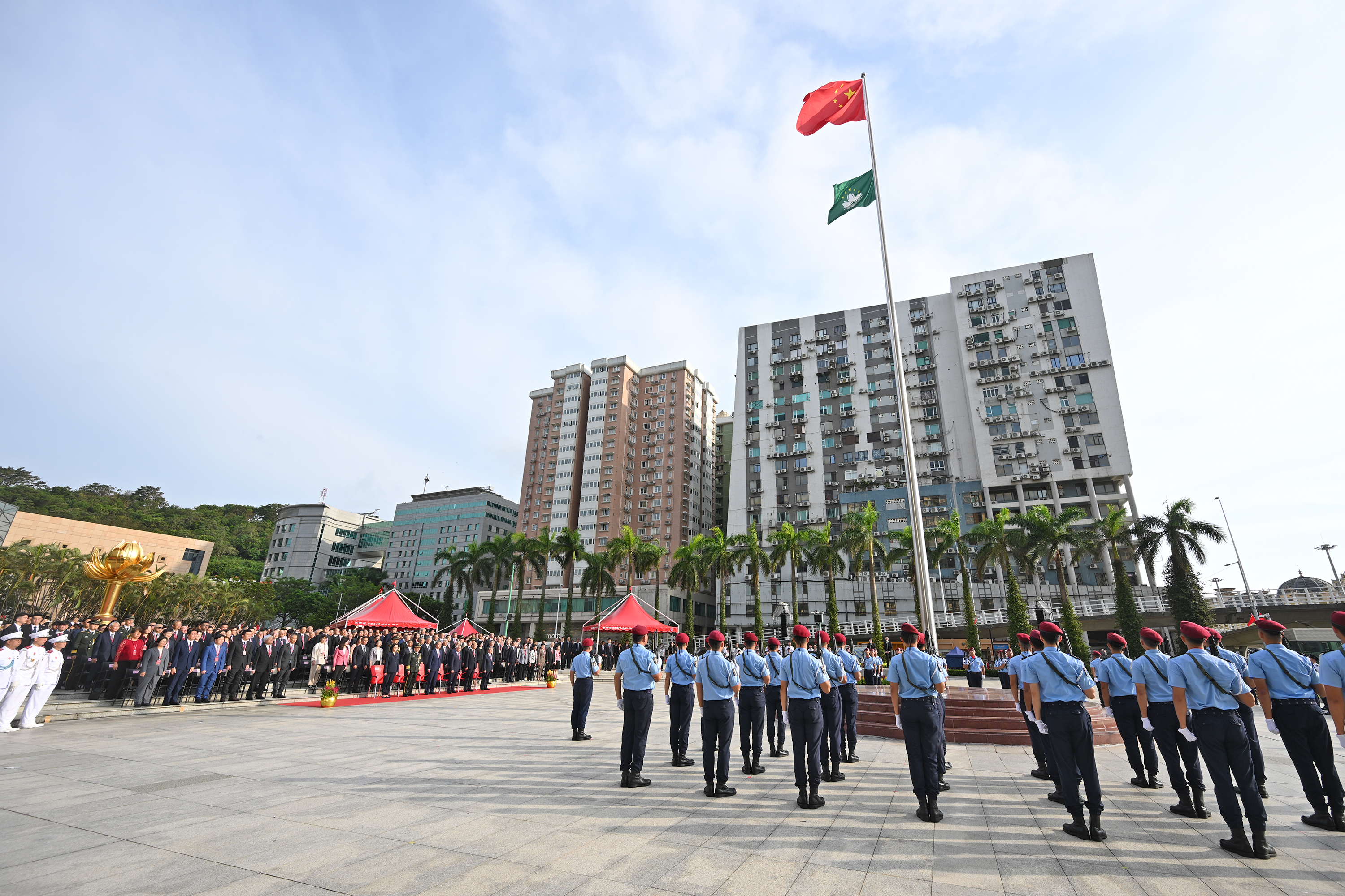 酒會前,特區政府早上8時在金蓮花廣場舉行隆重的國慶日升旗儀式,行政長官、中央人民政府駐澳機構負責人、澳門特區立法及司法機關負責人、行政會委員、立法會議員、特區政府官員、澳區人大代表、政協委員等約660人出席。