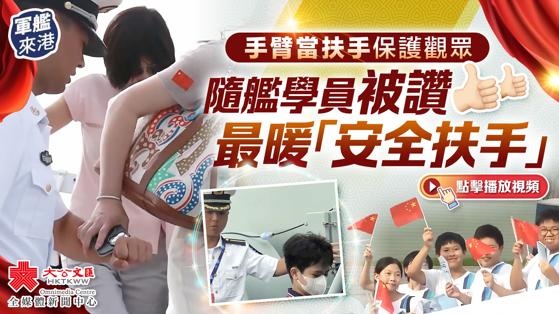 大公文匯全媒體報道,海軍83艦編隊在香港的首個公眾開放日,吸引了眾多香港市民前來參觀。大家心懷期待有序登上「海上流動大學」,隨艦學員們熱情地為市民們講解訓練艦的構造和各種艦艇裝備,還用手臂當扶手保護觀眾平穩上下艦艇,暖心護住轉角防止孩子磕傷。