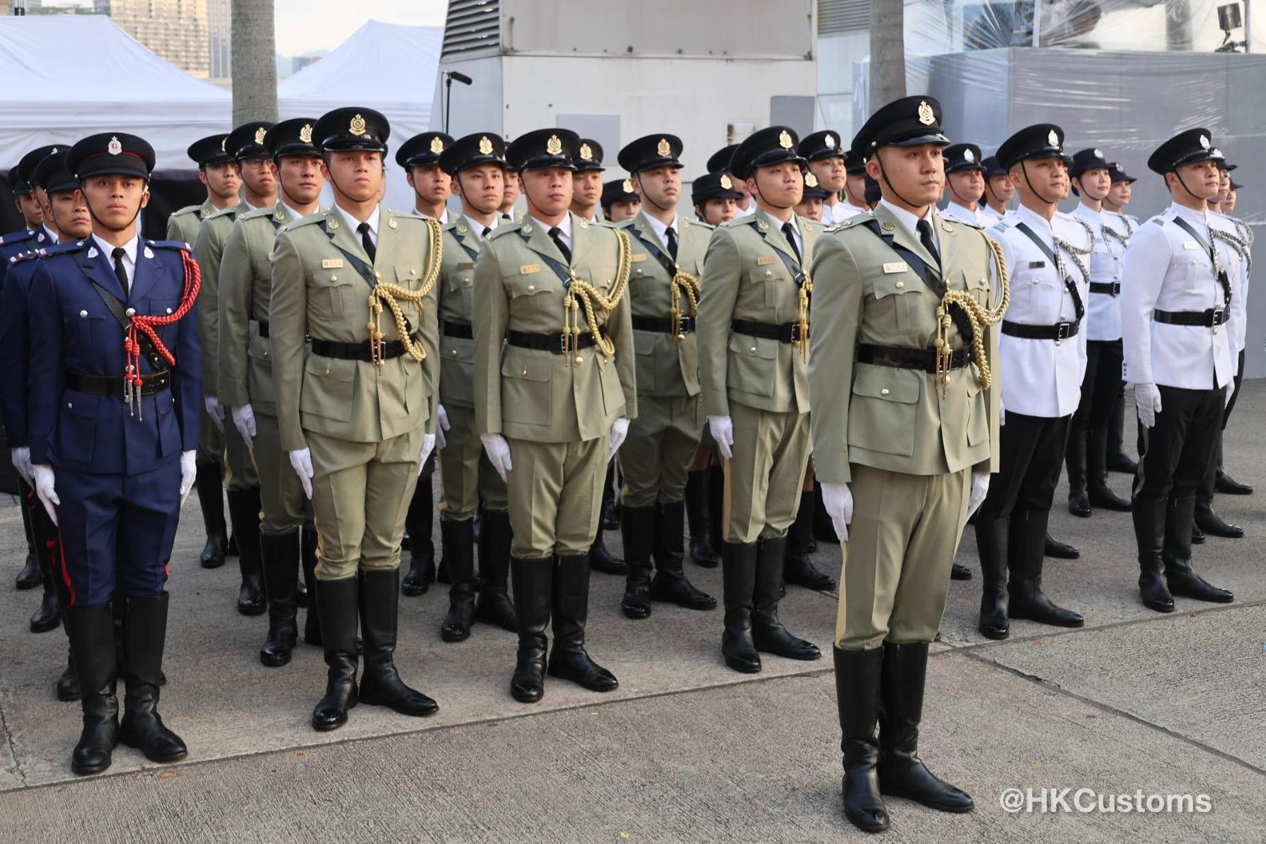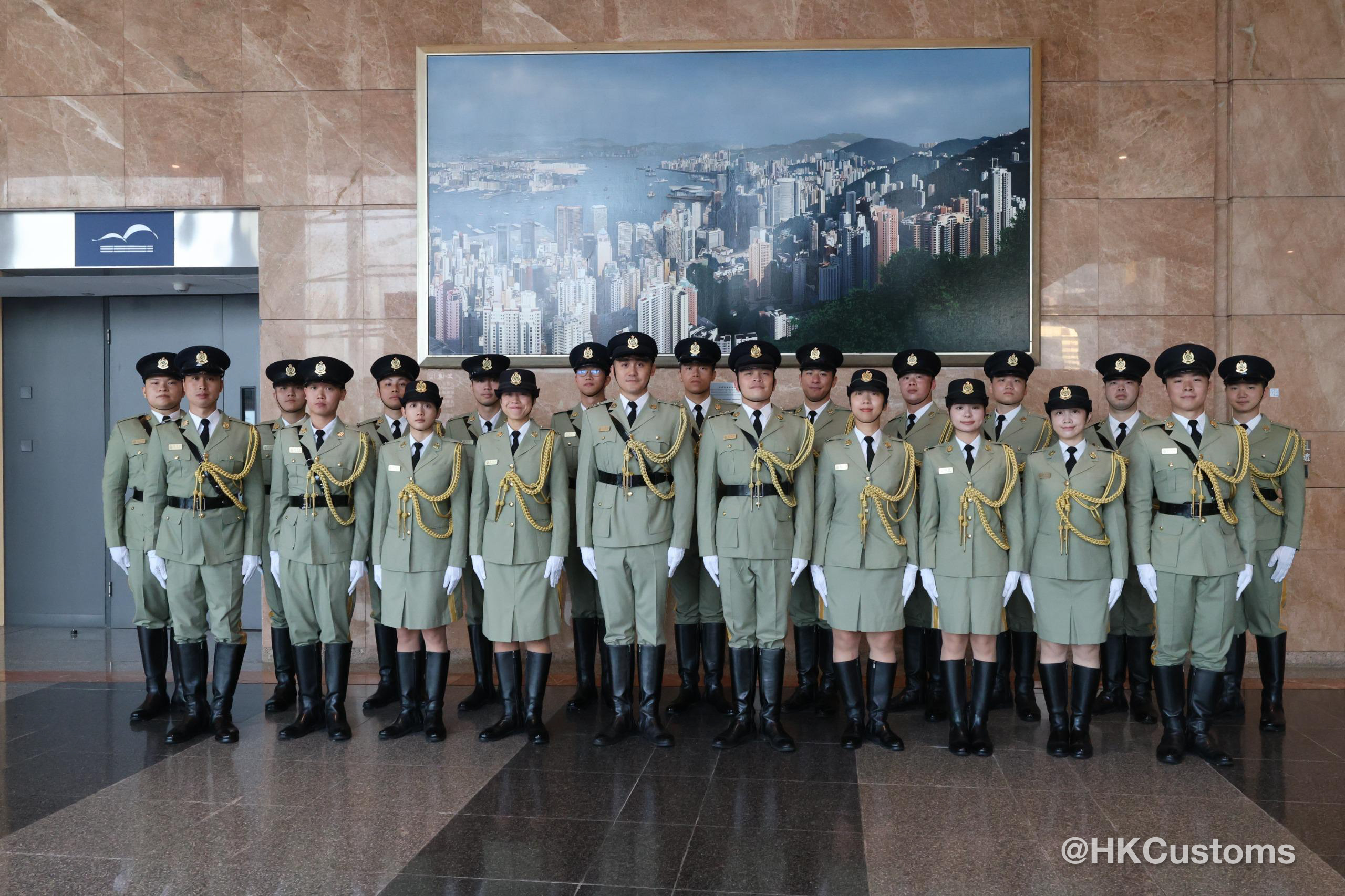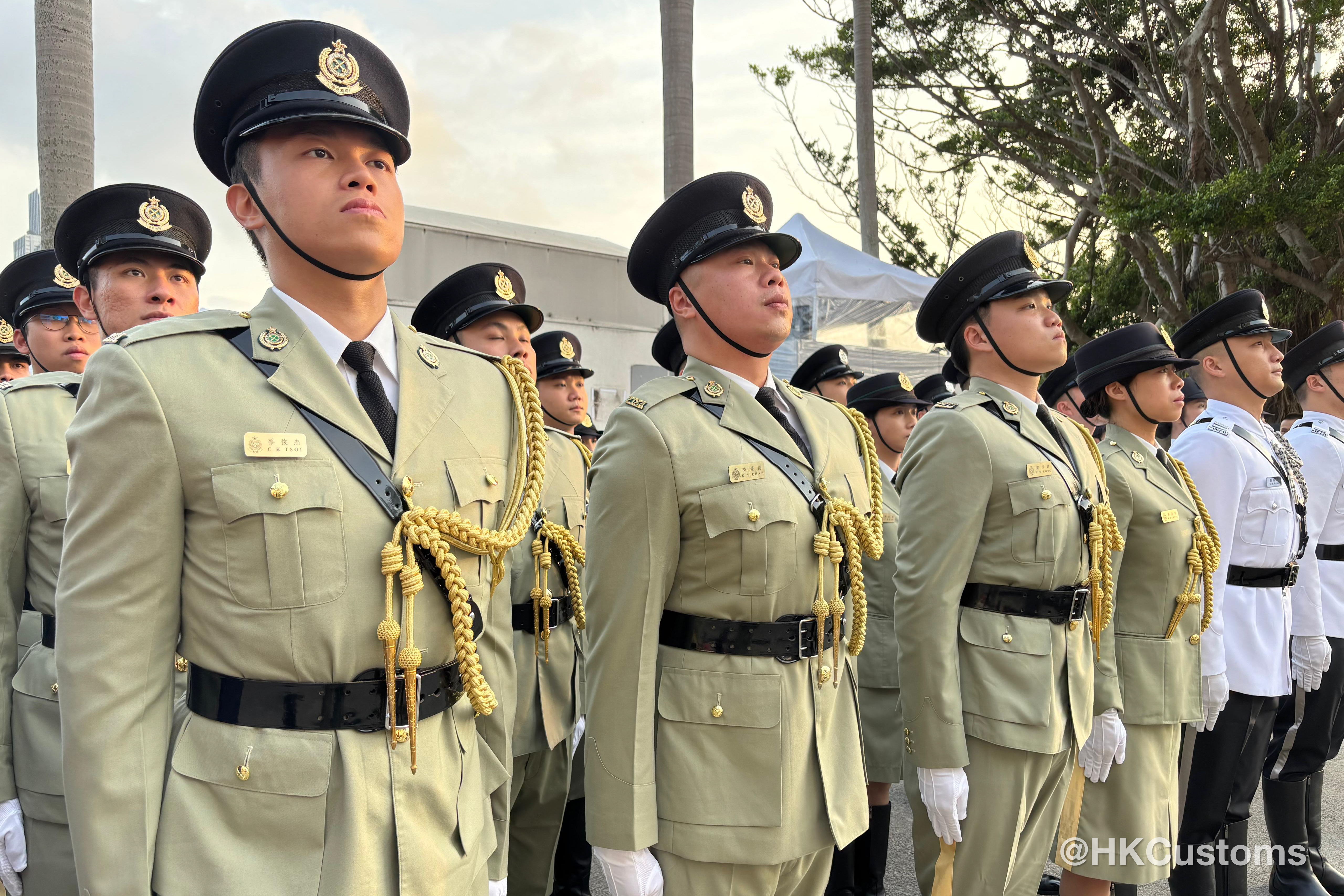 香港海關儀仗隊聯同其他紀律部隊儀仗隊昂首闊步,以中式步操參與升旗儀式,彰顯香港社會的繁榮和安定。同時,香港海關青年領袖團亦參與其中,展現青年新一代的愛國情懷及抱負。參與升旗儀式的儀仗隊隊員及領袖團團員親身感受這光榮時刻,為身為祖國的一份子感到無比自豪。