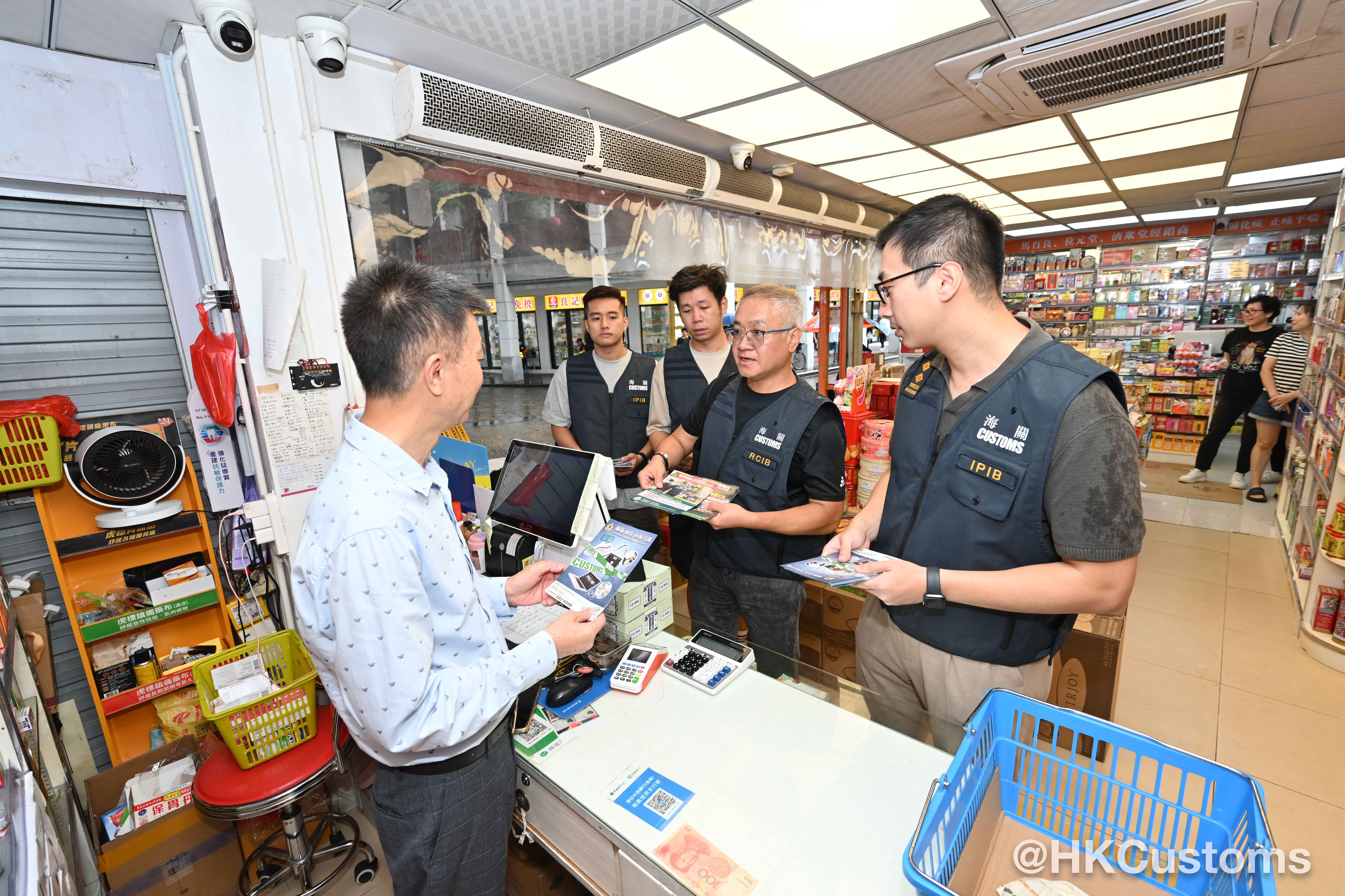 內地國慶黃金周將至,適逢中秋佳節,香港海關聯同中英街管理局於9月25日於中英街展開聯合巡邏行動,防範和打擊違法行為,確保市場秩序。香港海關人員並向商戶派發單張,提醒他們遵守香港法例《商品說明條例》及新修訂的香港法例《應課稅品條例》,切勿售賣冒牌物品或私煙。
