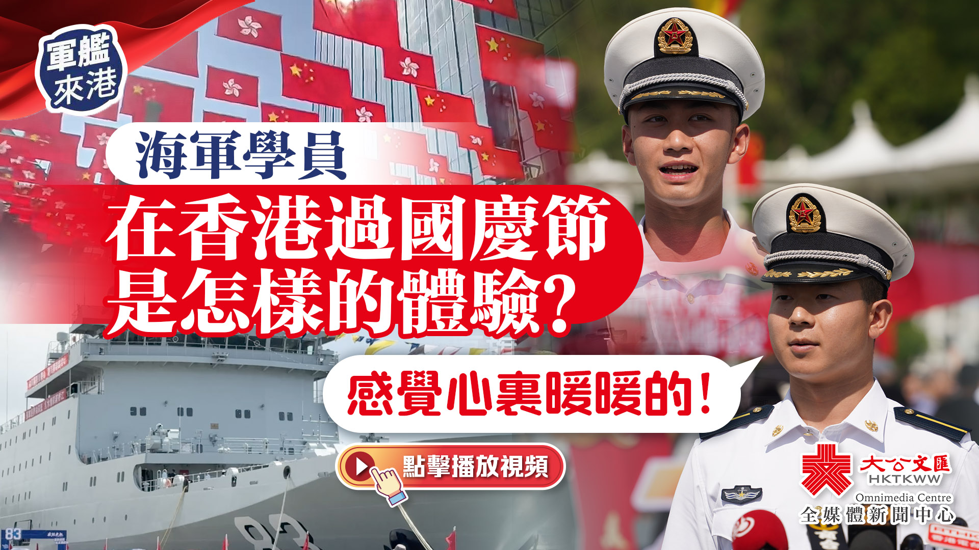 大公文匯全媒體報道,由海軍戚繼光艦、沂蒙山艦組成的83艦編隊今日(10月2日)繼續在昂船洲軍營舉辦艦艇開放活動,吸引大量香港市民到場參與。在接受傳媒採訪時,海軍大連艦艇學院學員程嘉銘與張子涵分享了在香港歡度國慶節的體驗,他們特別提到對維港國慶煙花和香港街頭的紅旗旗海印象深刻。
