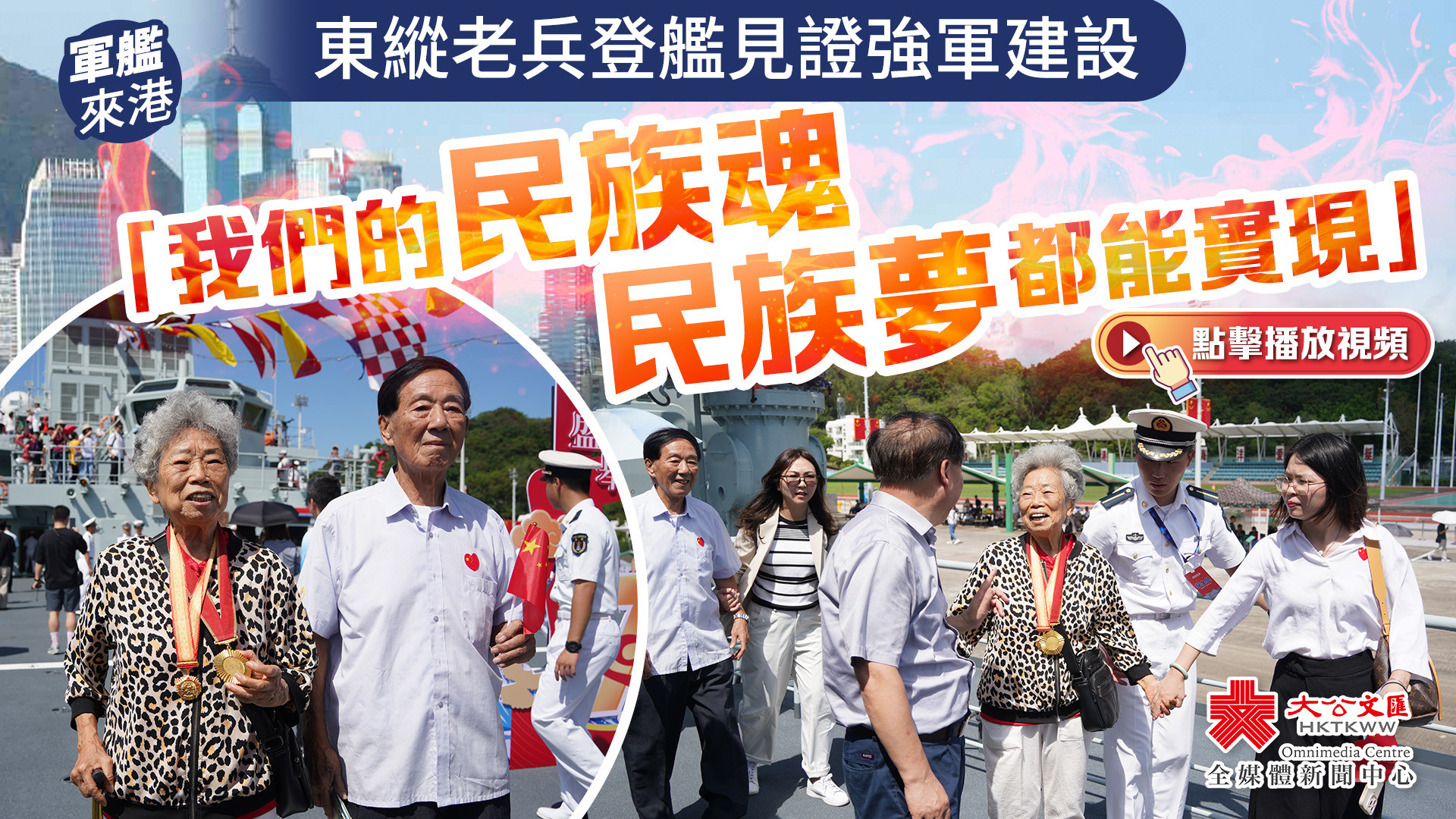 由海軍戚繼光艦、沂蒙山艦組成的83艦編隊今日(10月2日)繼續在昂船洲軍營舉辦艦艇開放活動。原東江縱隊港九獨立大隊老游擊戰士聯誼會會長、現年90歲的香港抗日老兵林珍今日到場參與活動,並登上戚繼光艦。在甲板上,林珍激動地表示:「我們親眼看到我們的強軍建設,強軍就有強國的力量,人民是強軍的最主要根基,我們的民族魂、民族夢都能實現。」林珍希望讓更多群眾來參觀,更認真地親眼看到強軍力量和保衛世界和平的力量。