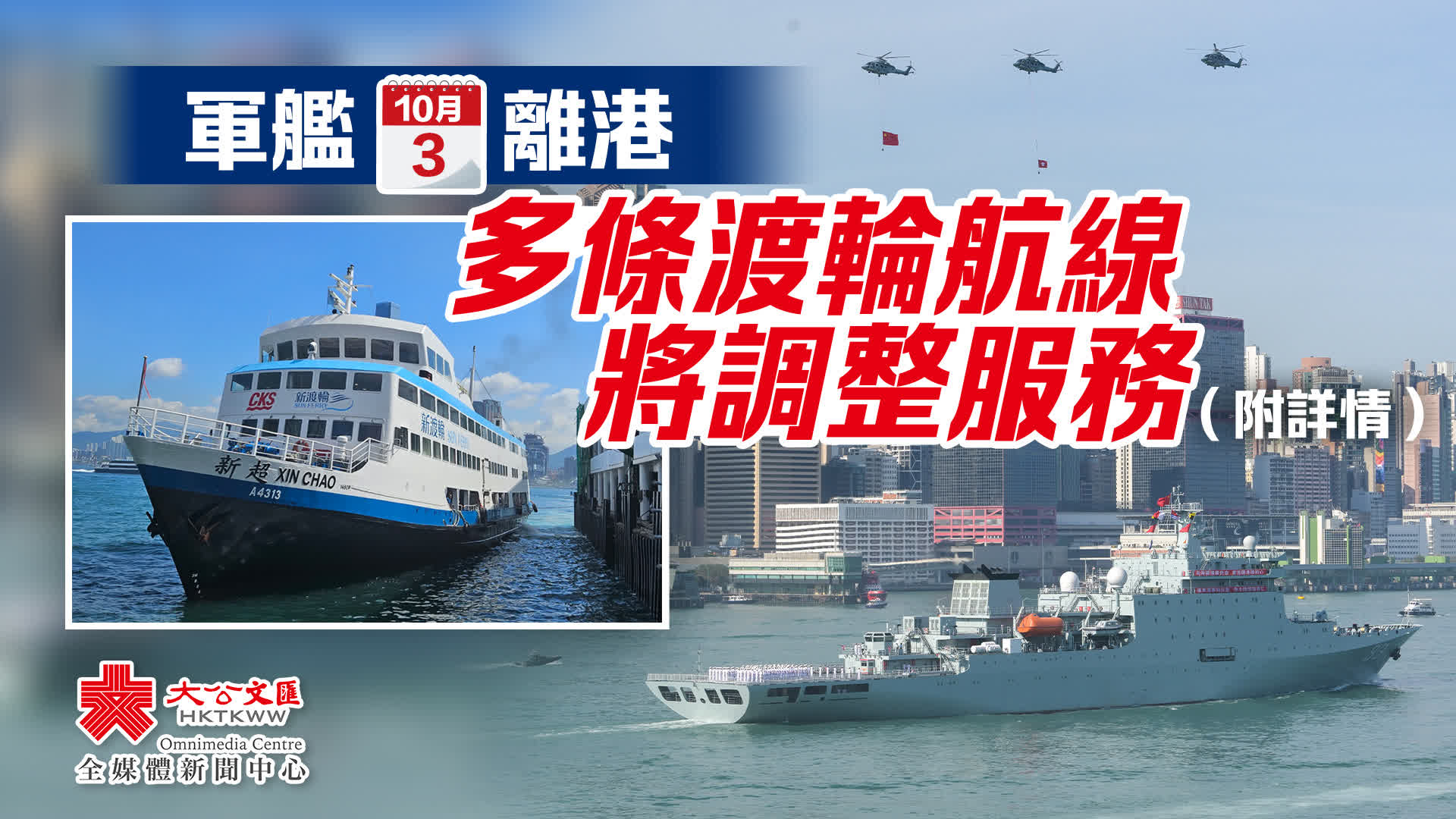 大公文匯全媒體報道,中國人民解放軍海軍戚繼光艦及沂蒙山艦明日(10月3日)離開香港。運輸署今日(10月2日)提醒市民,因應明日上午的海上交通特別措施,渡輪服務將有所調整。署方已督導營辦商加強相關巴士服務。運輸署提醒市民(特別是離島居民)應預早計劃行程,預留充裕時間出行。