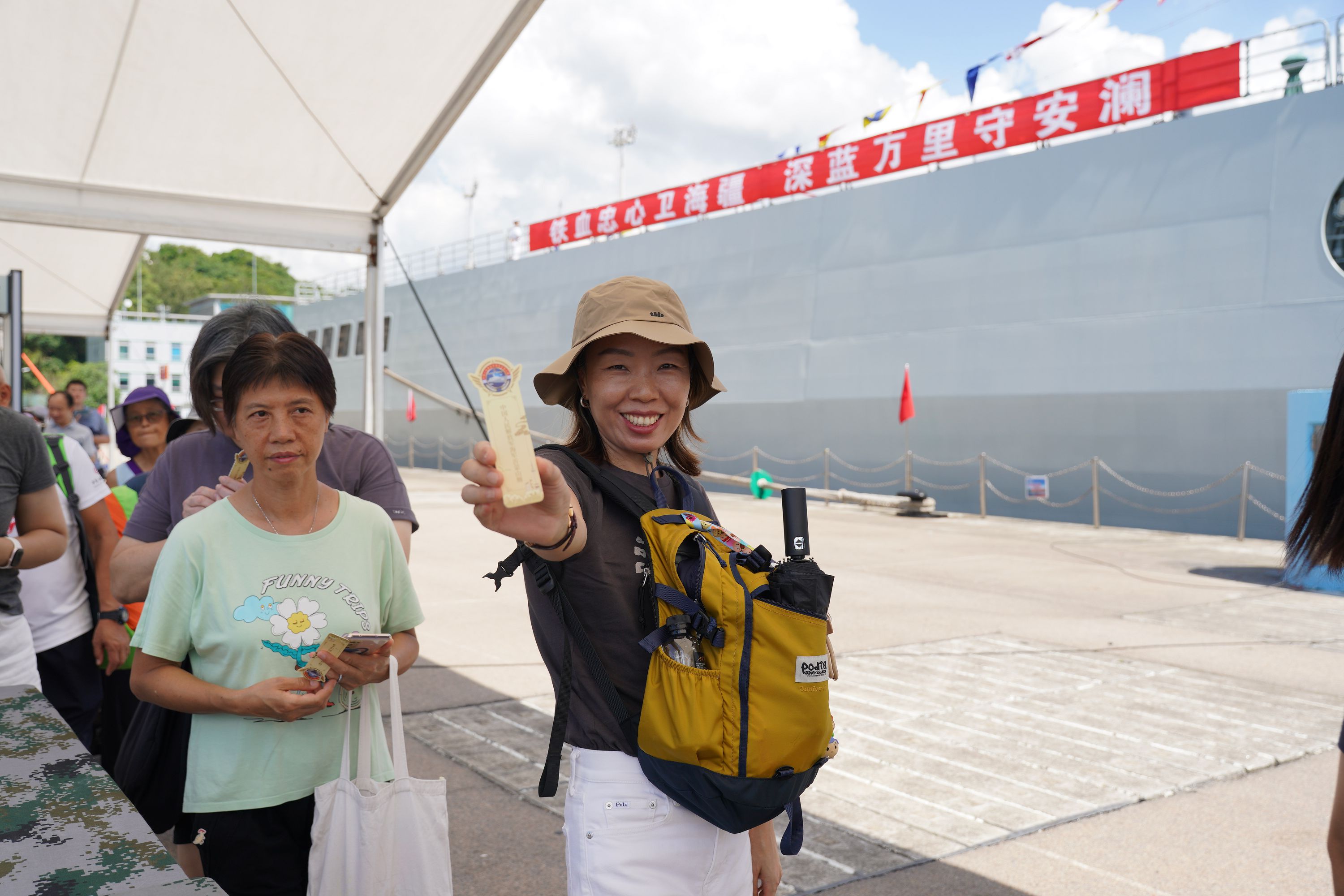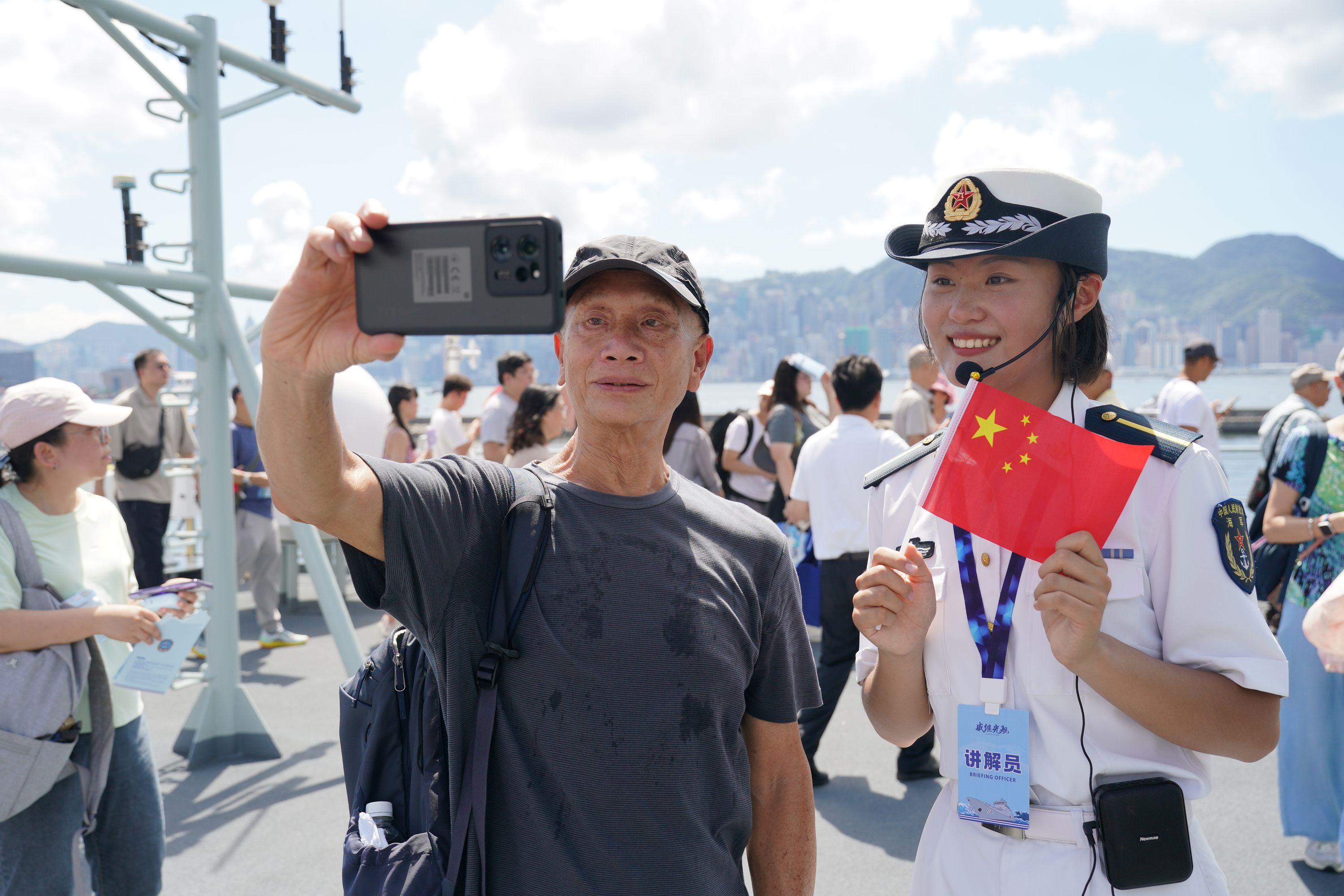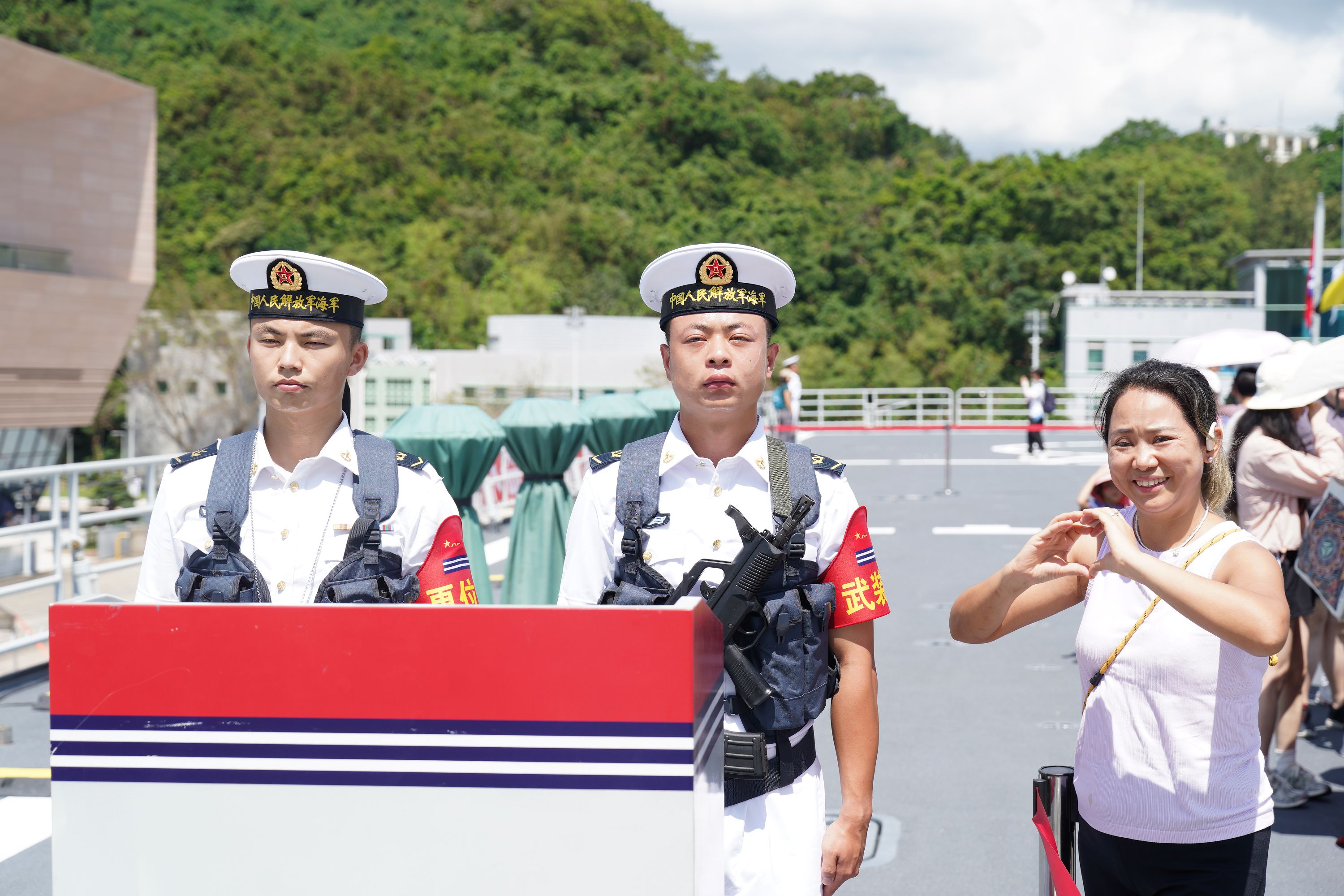 大公文匯全媒體報道,由海軍戚繼光艦、沂蒙山艦組成的83艦編隊今日(10月2日)繼續在昂船洲軍營舉辦艦艇開放活動。雖然天氣炎熱,市民的熱情卻絲毫未減,紛紛登艦參觀,一睹「國之重器」的雄偉風采,感受海軍力量的磅礴氣勢。現場氣氛熱烈,市民們與艦上官兵互動,合影留念,爭相打卡記錄這難忘時刻。許多人還親身體驗了槍械操作,近距離感受軍事裝備的精妙與力量。