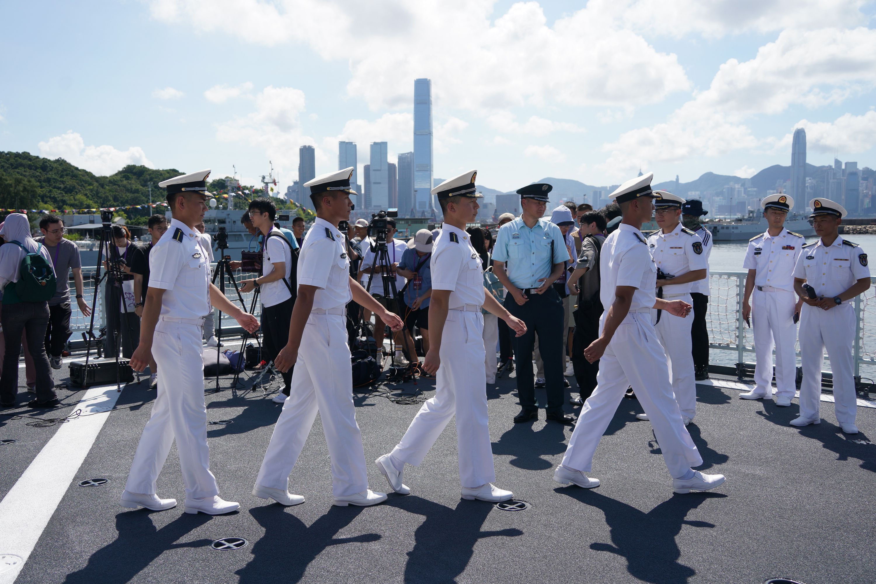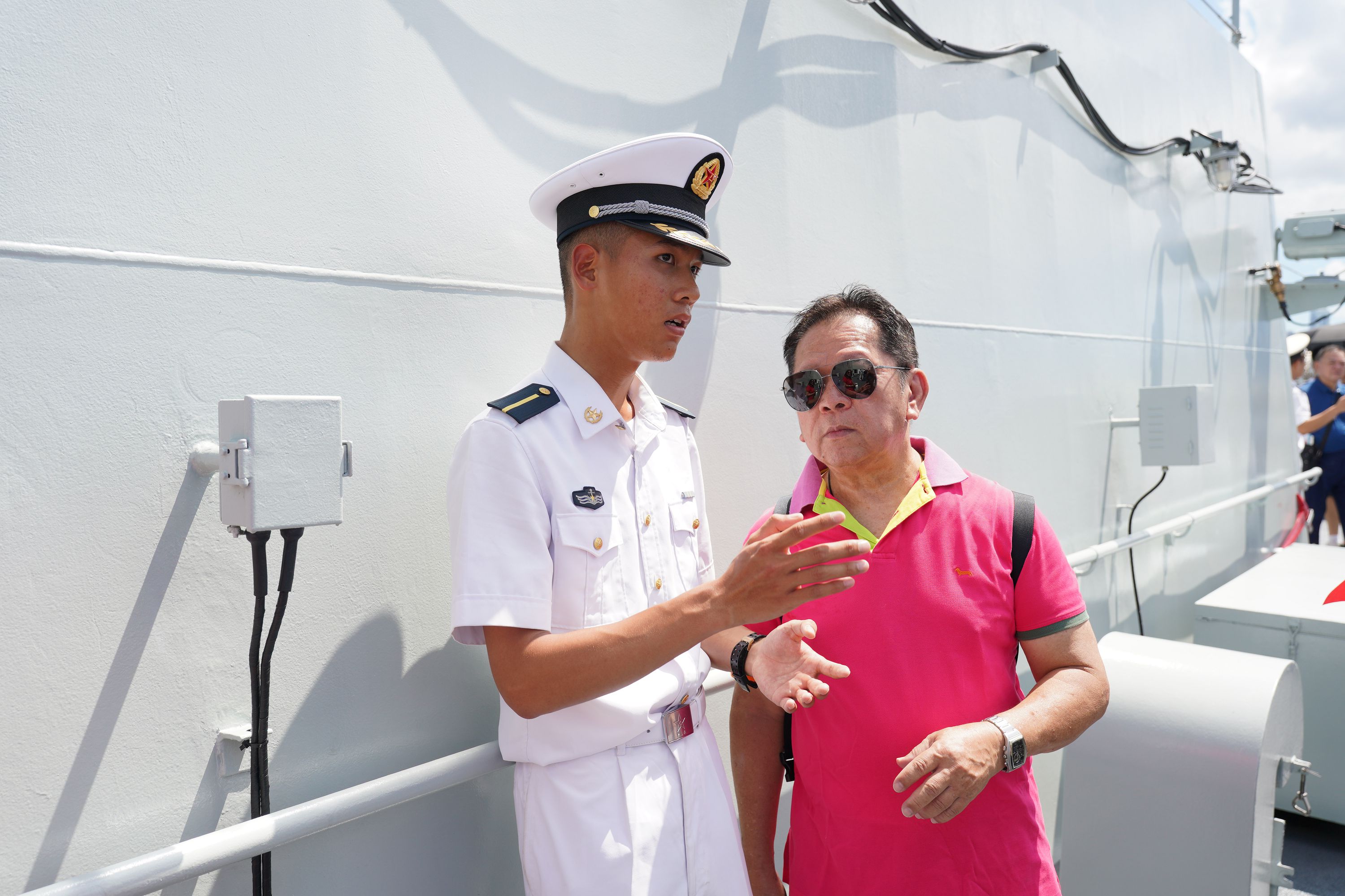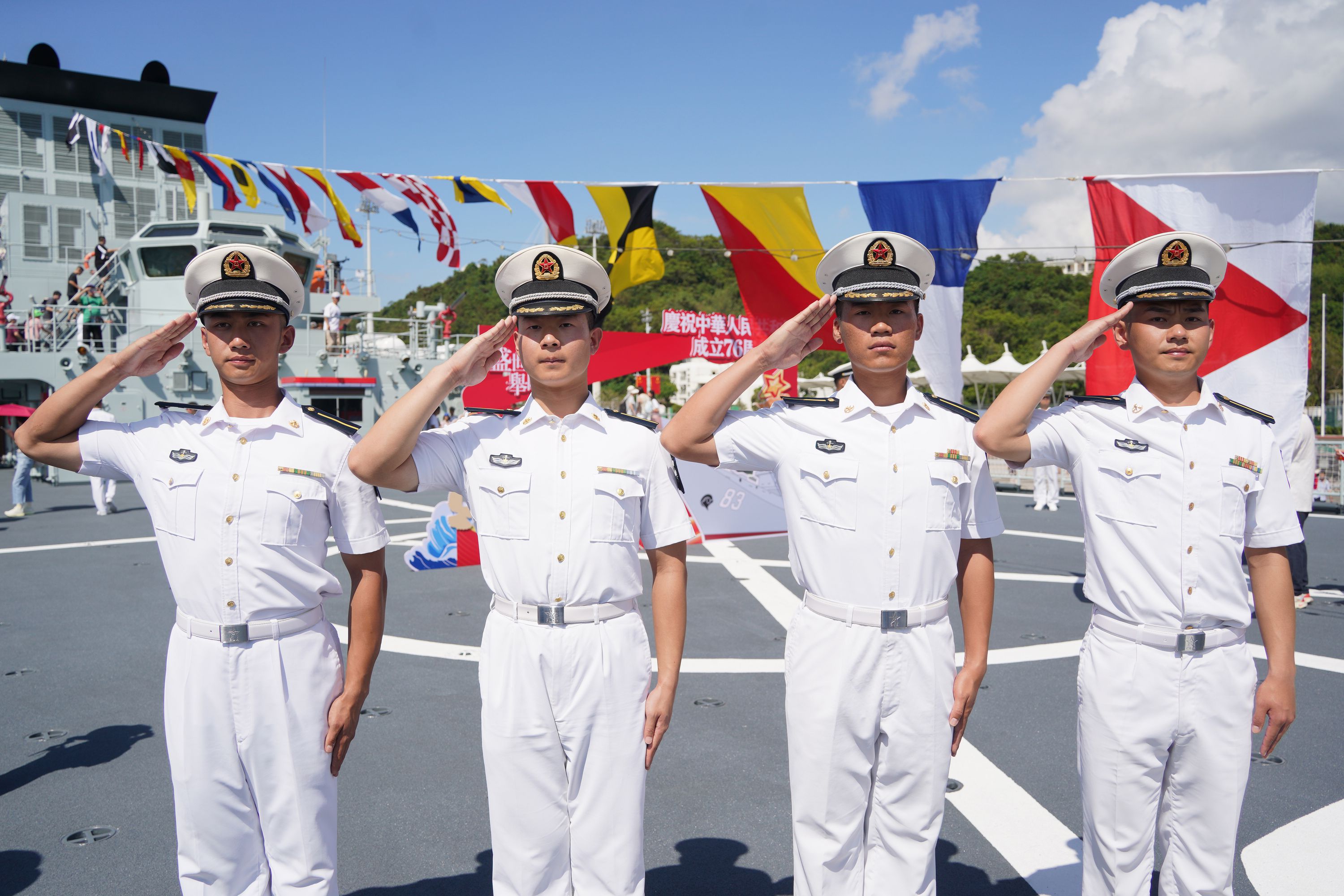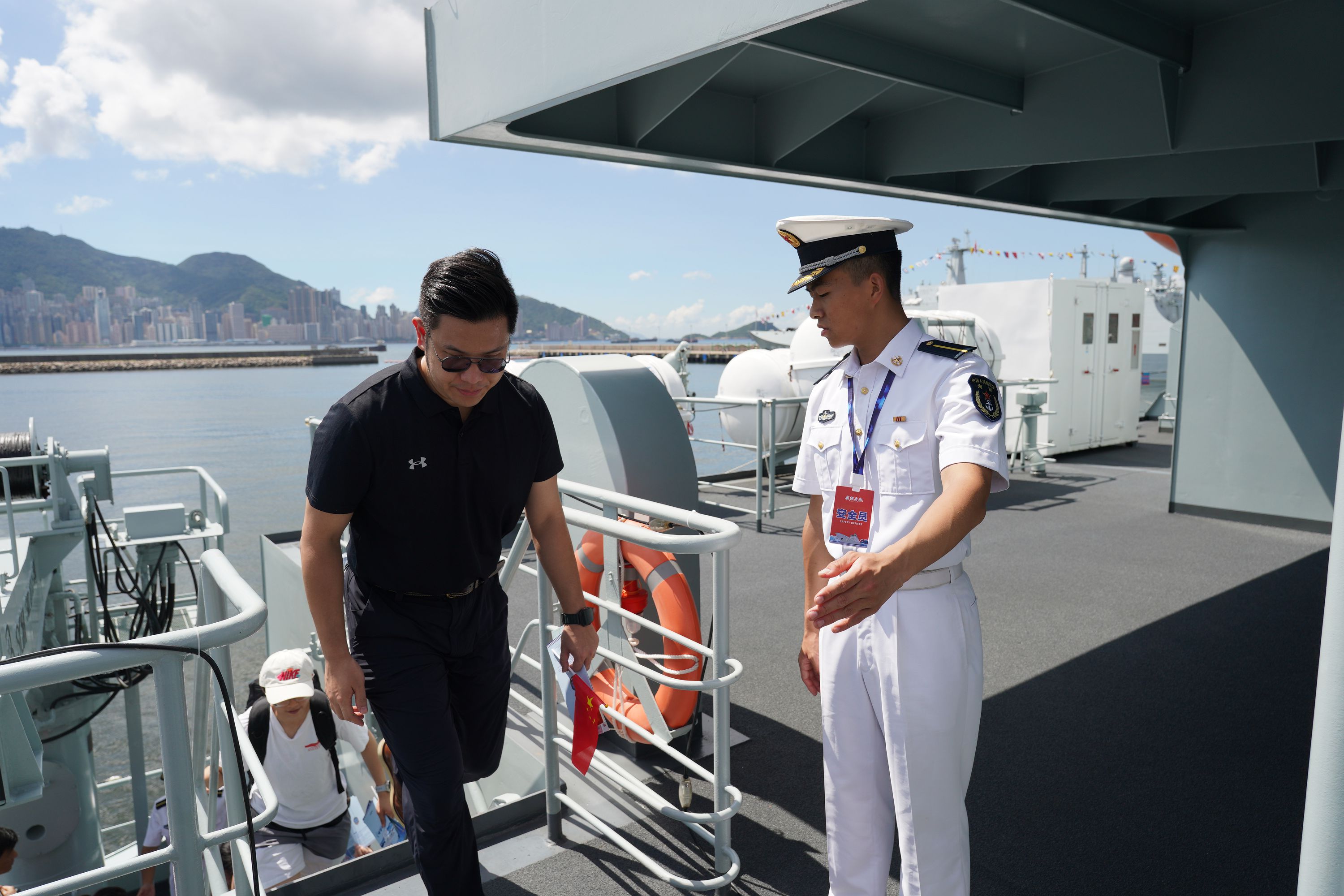 大公文匯全媒體報道,由海軍戚繼光艦、沂蒙山艦組成的83艦編隊今日(10月2日)繼續在昂船洲軍營舉辦艦艇開放活動。雖然天氣炎熱,市民的熱情卻絲毫未減,紛紛登艦參觀,一睹「國之重器」的雄偉風采,感受海軍力量的磅礴氣勢。現場氣氛熱烈,市民們與艦上官兵互動,合影留念,爭相打卡記錄這難忘時刻。許多人還親身體驗了槍械操作,近距離感受軍事裝備的精妙與力量。