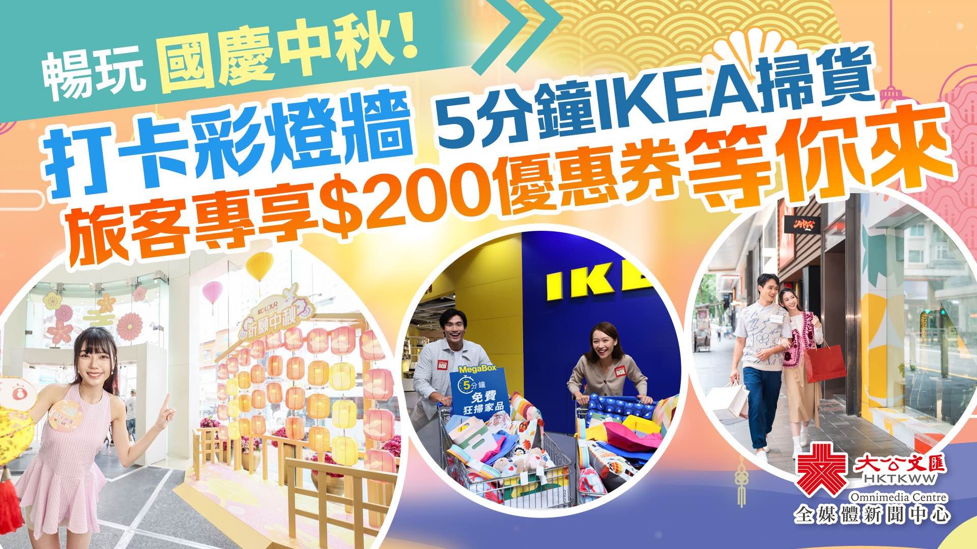 大公文匯全媒體報道,人月兩團圓,花燈映明月。每逢中秋,總少不了與親朋摯愛賞花燈、吃月餅、共享天倫之樂。今個國慶中秋雙節,本港多家商場激推好禮優惠,大公文匯全媒體為大家整理了以下多款妙趣橫生的國慶中秋打卡點,從夢幻的「中秋彩燈牆」,到於全港最大間IKEA分店內「五分鐘免費狂掃家品」,更有旅客專屬優惠,毋須消費即可免費領取HK$200電子優惠券,一齊來睇睇!