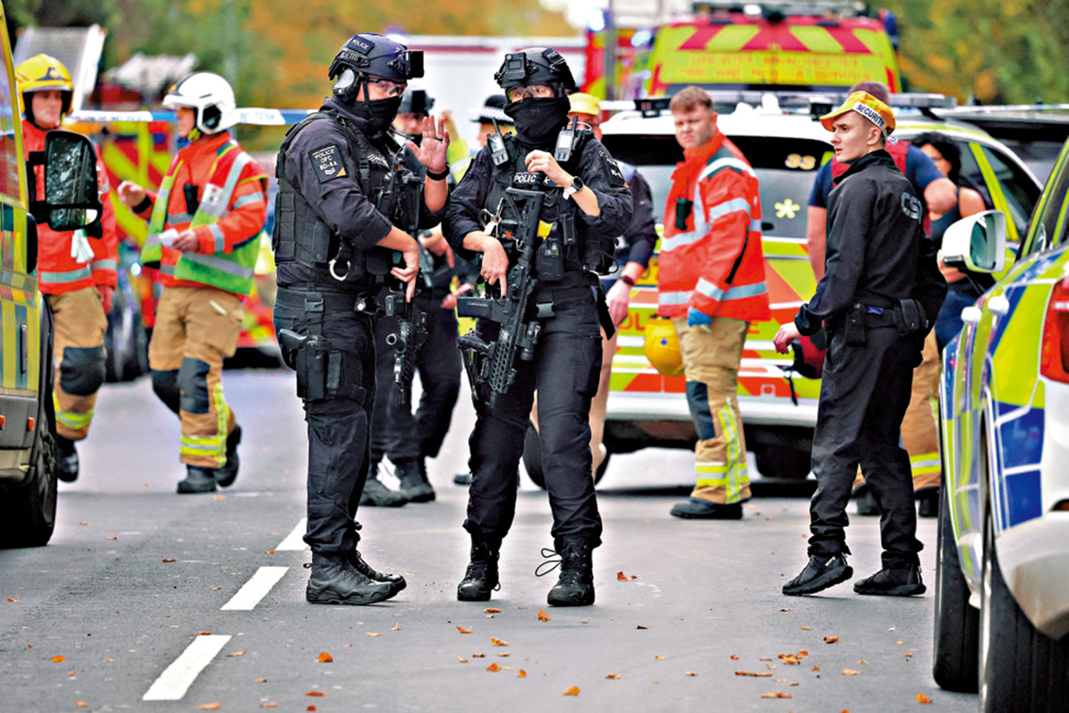 警方稱,被擊斃的襲擊者疑似身穿爆炸背心,爆炸物處理小組已趕赴現場。據英媒報道,警方認出襲擊者,但「出於安全原因」現階段無法確認。警方還逮捕了另外2人,但暫未公布他們的身份。警方呼籲公眾保持耐心,等待官方調查結果出爐。