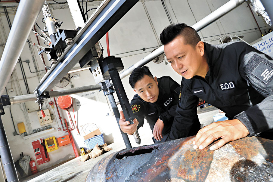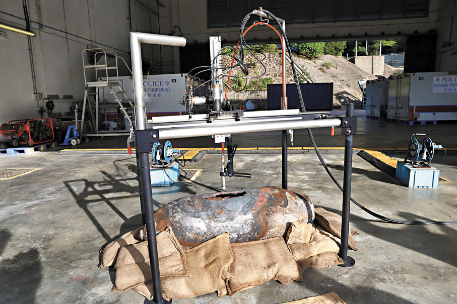 (香港文匯報記者 劉啟業)鰂魚涌濱海街地盤上月19日發現二戰時期美軍1,000磅的「ANM65」標準空投炸彈,香港特區警務處爆炸品處理課僅花10小時左右成功拆彈,解除危機。負責的拆彈專家接受香港文匯報獨家專訪時指出,今次能在短時間內高效疏散附近6,000名居民,有賴警隊內部、其他特區政府部門及關愛隊等地區人士群策群力和配合。專家又引用統計顯示,二戰期間香港約有逾一成炸彈投擲後未有成功引爆,埋藏在地底至今,集中在九龍半島及港島北及港島東,例如灣仔區馬己仙峽道、南區赤柱、啟德等(見表),隨着上址不少舊樓重建,相信陸續有二戰炸彈被發現,長埋地底的炸彈被挖出後會變得較敏感,有爆炸可能,故爆炸品處理課首要是確保人員及巿民安全,並安全地銷毀炸彈。