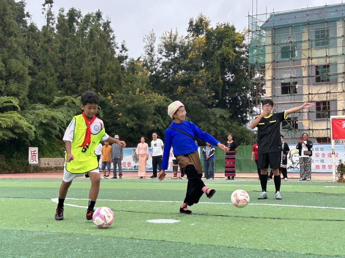 當79歲的傣族老奶奶與11歲的佤族少年共同開球,象徵「傳承與希望」的足球滾動起來。哨聲吹響,小球員們如離弦之箭沖向球場,奔跑、拚搶、射門,每一個動作都洋溢着孩子們對足球最純粹的熱愛。