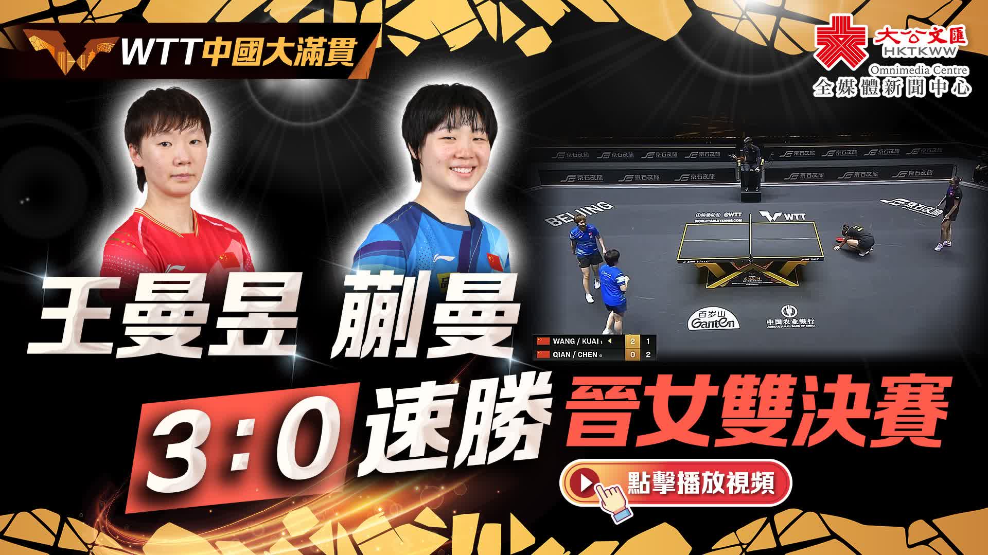 關鍵詞:WTT中國大滿貫王曼昱蒯曼乒乓球
