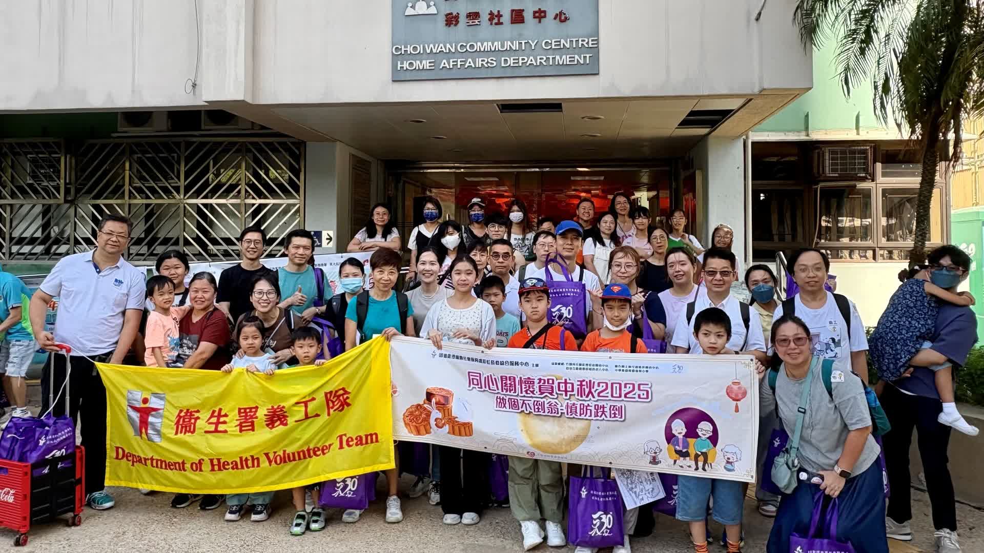 衞生署義工隊50名成員在9月27日亦參加了循道衞理楊震社會服務處—彩虹長者綜合服務中心舉辦的「同心關懷賀中秋2025」,探訪區內66名獨居或雙老同住長者,並送上中秋節禮物及提醒長者家居安全的重要性,讓他們在佳節感受到社會的關心和祝福。