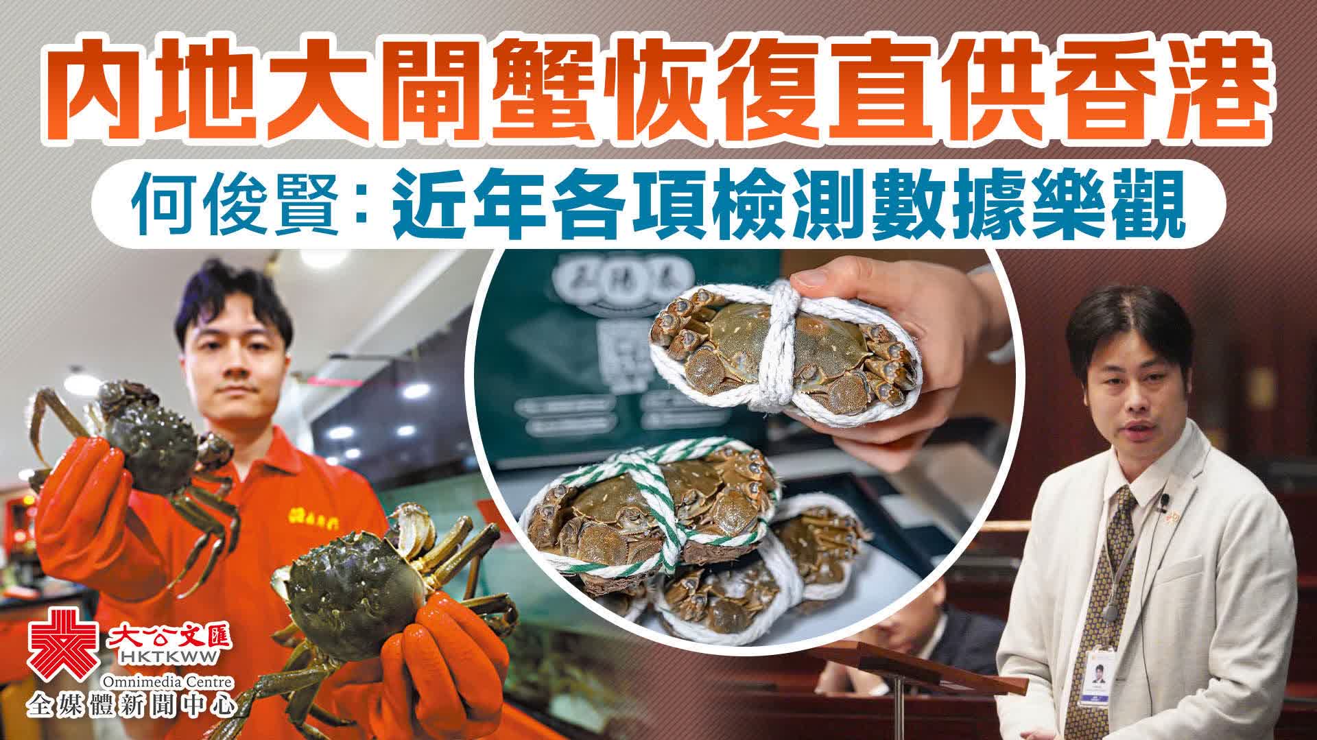 大閘蟹直接供港被停近9年,何俊賢提到,香港業界始終積極爭取恢復直供,因為「遊飛機河」到港的大閘蟹價格更高,相比直供蟹也「無咁新鮮」,恢復直供將降低蟹商成本,更能為市民提供「又正又平」的新鮮滋味。