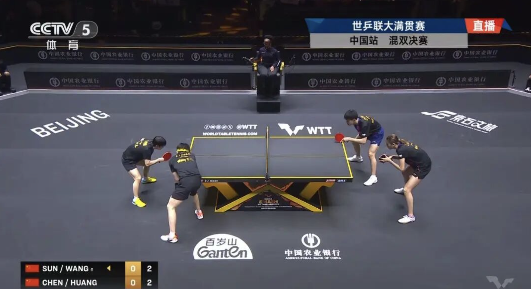 第二局比賽中,王楚欽/孫穎莎11比9黃友政/陳熠再下一局,將比分優勢擴大到2-0。