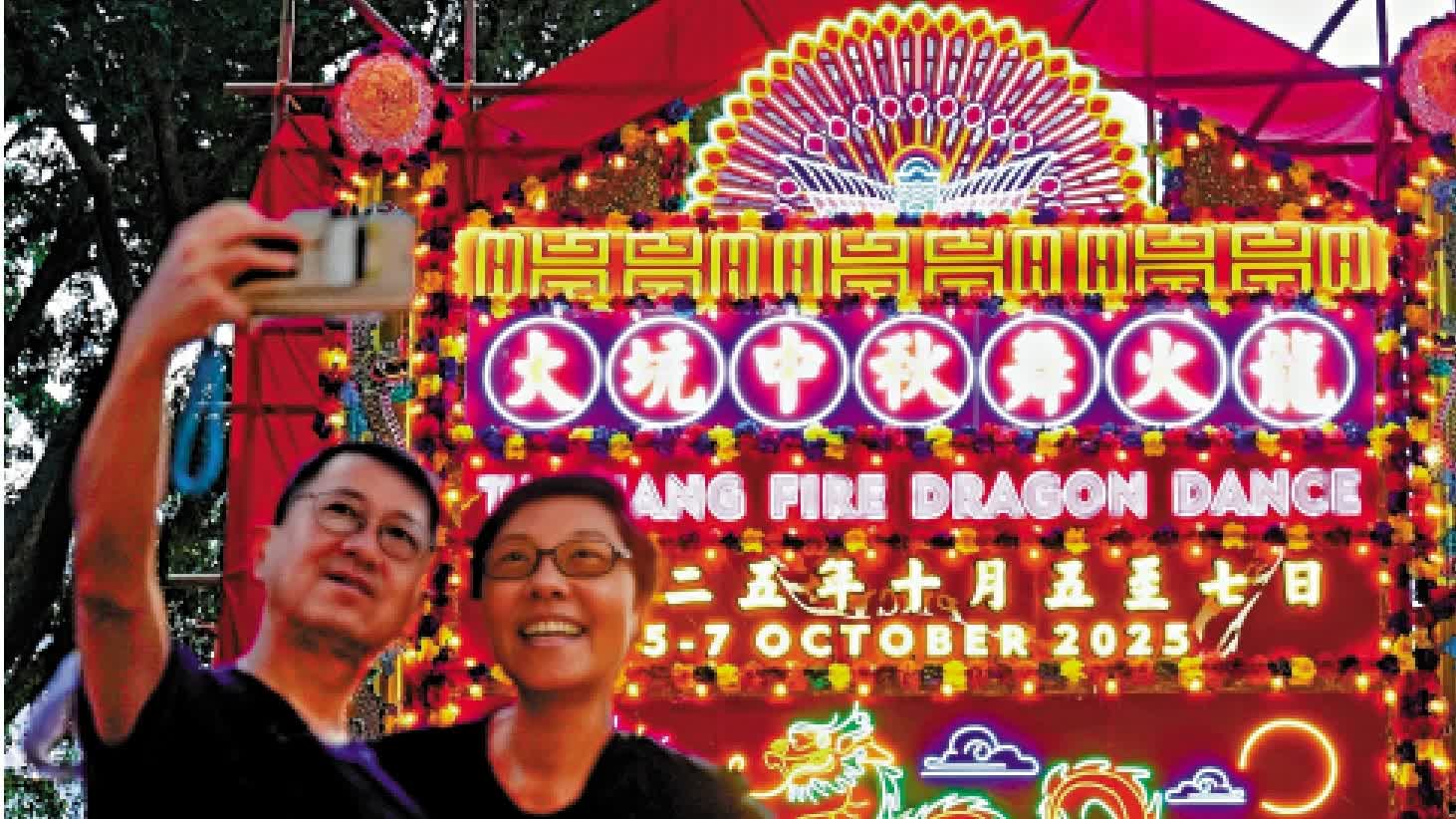 大公報記者昨日在現場觀察,不少市民及旅客在花牌前拍照打卡,「這個(花牌)太有趣了,沒見過,很有味道!」有旅客認為,花牌為中秋帶來氣氛,也很有趣。有30年紮作經驗的花牌師傅蔡榮基介紹,花牌紮作已有上百年歷史,與傳統舞火龍相結合,共同照亮中秋夜,喜上加喜。花牌近年加入越來越多新元素,如LED燈等,晚上拍照同樣絢麗,「不僅好打卡,更讓旅客一眼記住這獨有屬於香港的文化。」