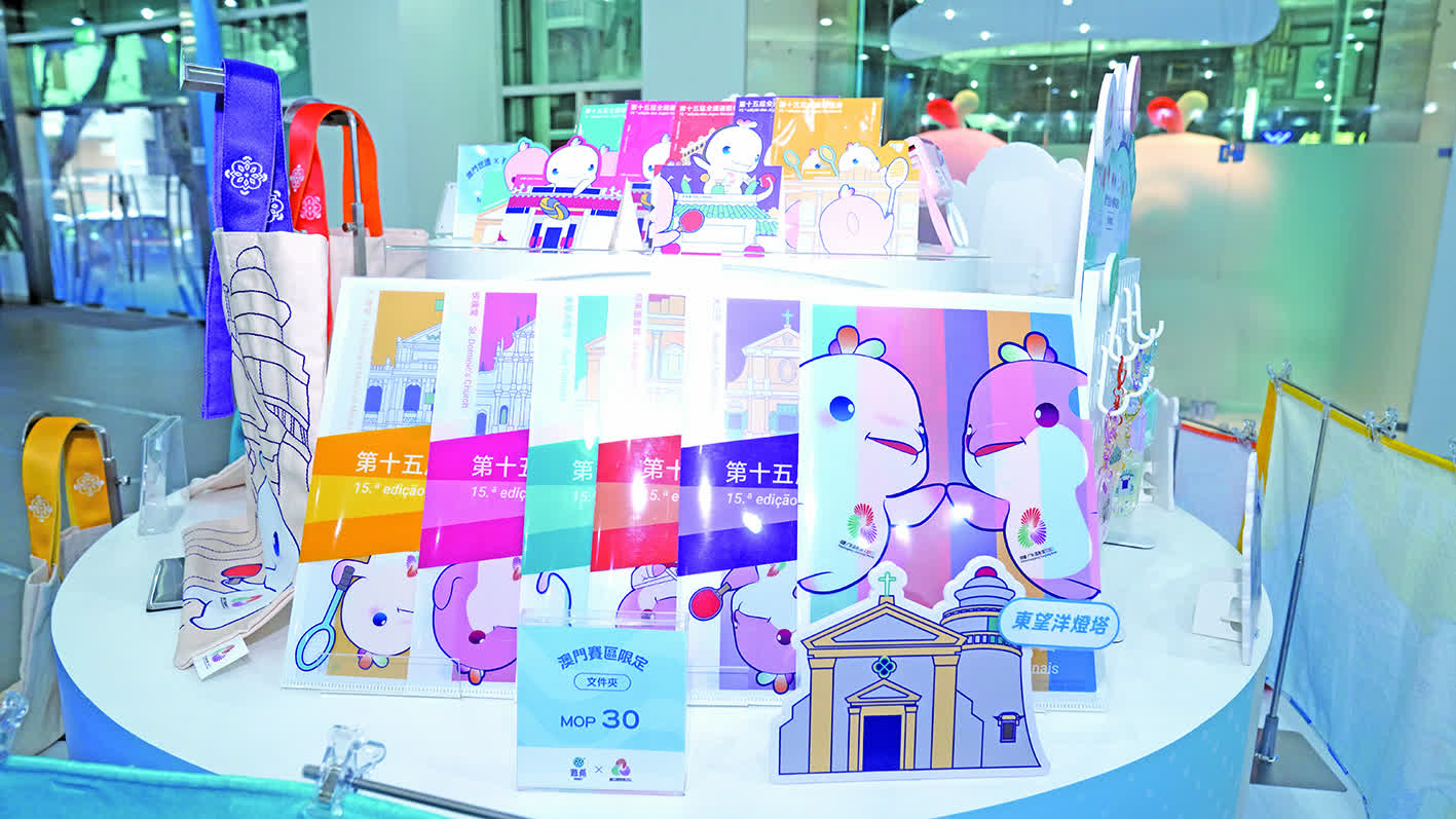 第十五屆全國運動會開幕進入倒數一個月,澳門賽區多間官方特許商品零售店已投入運作,方便各界人士選購,店內陳列全運會紀念商品種類繁多,其吉祥物「喜洋洋」「樂融融」化身可愛公仔,印在隨行杯、明信片等商品上,其中更有不少是「澳門限定」的商品系列。