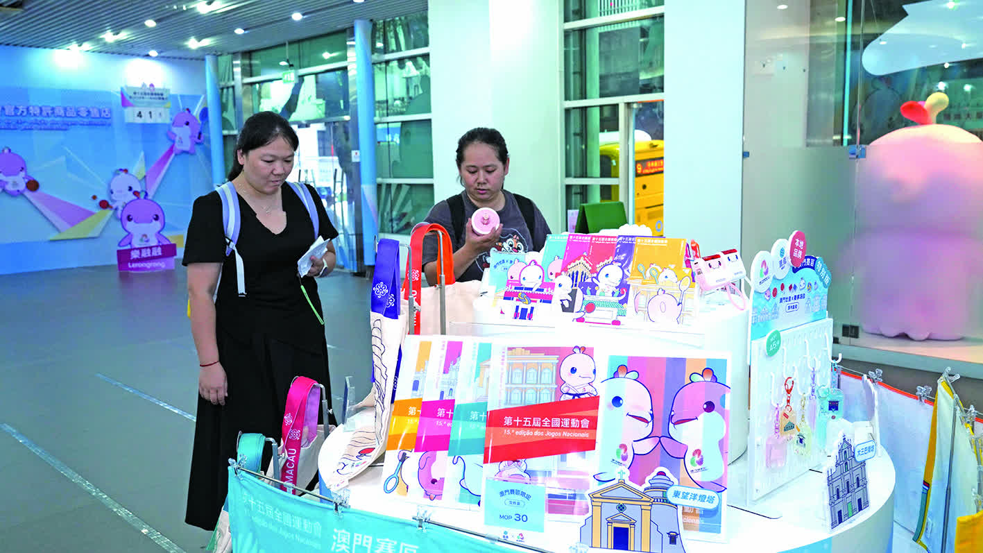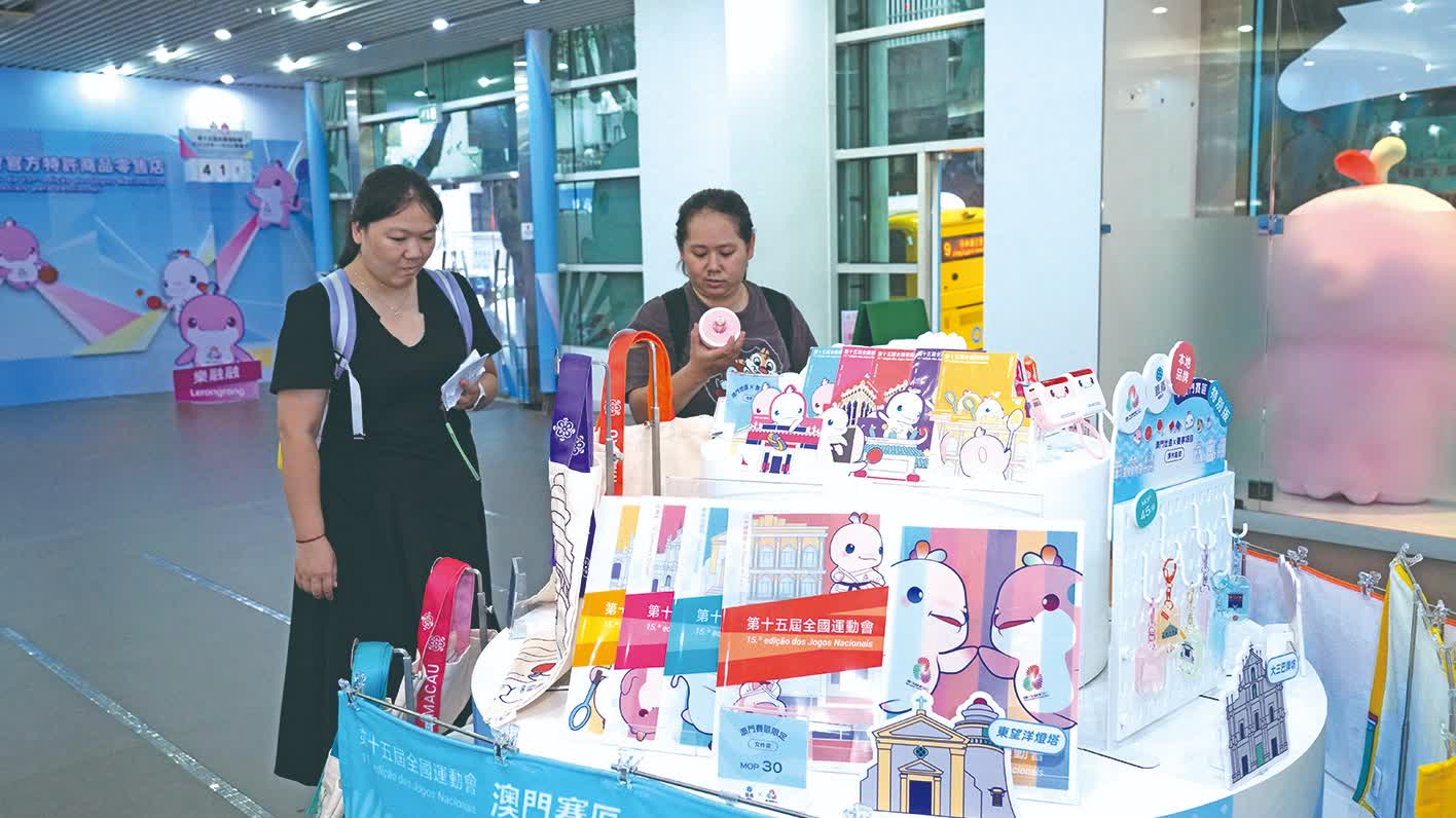 隨着全運會開幕進入最後一個月倒數,賽事氛圍日漸濃厚,澳門街頭隨處可見全運會宣傳旗幟與吉祥物裝置,各特許商品零售店的人流持續增加。澳門賽區籌備辦公室主任潘永權早前表示,正計劃在賽事舉辦期間於各場館增設臨時零售店,方便為市民和旅客提供優質的購物體驗。