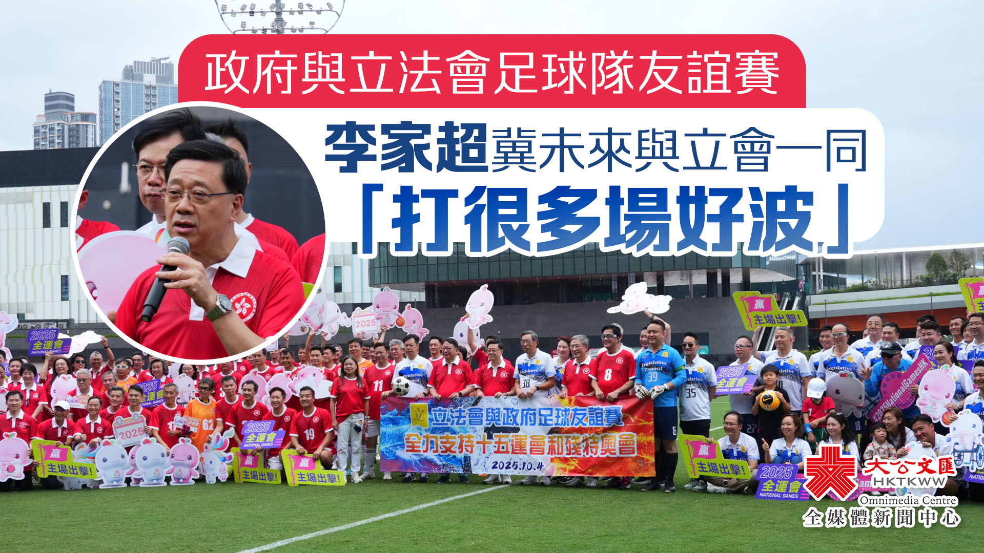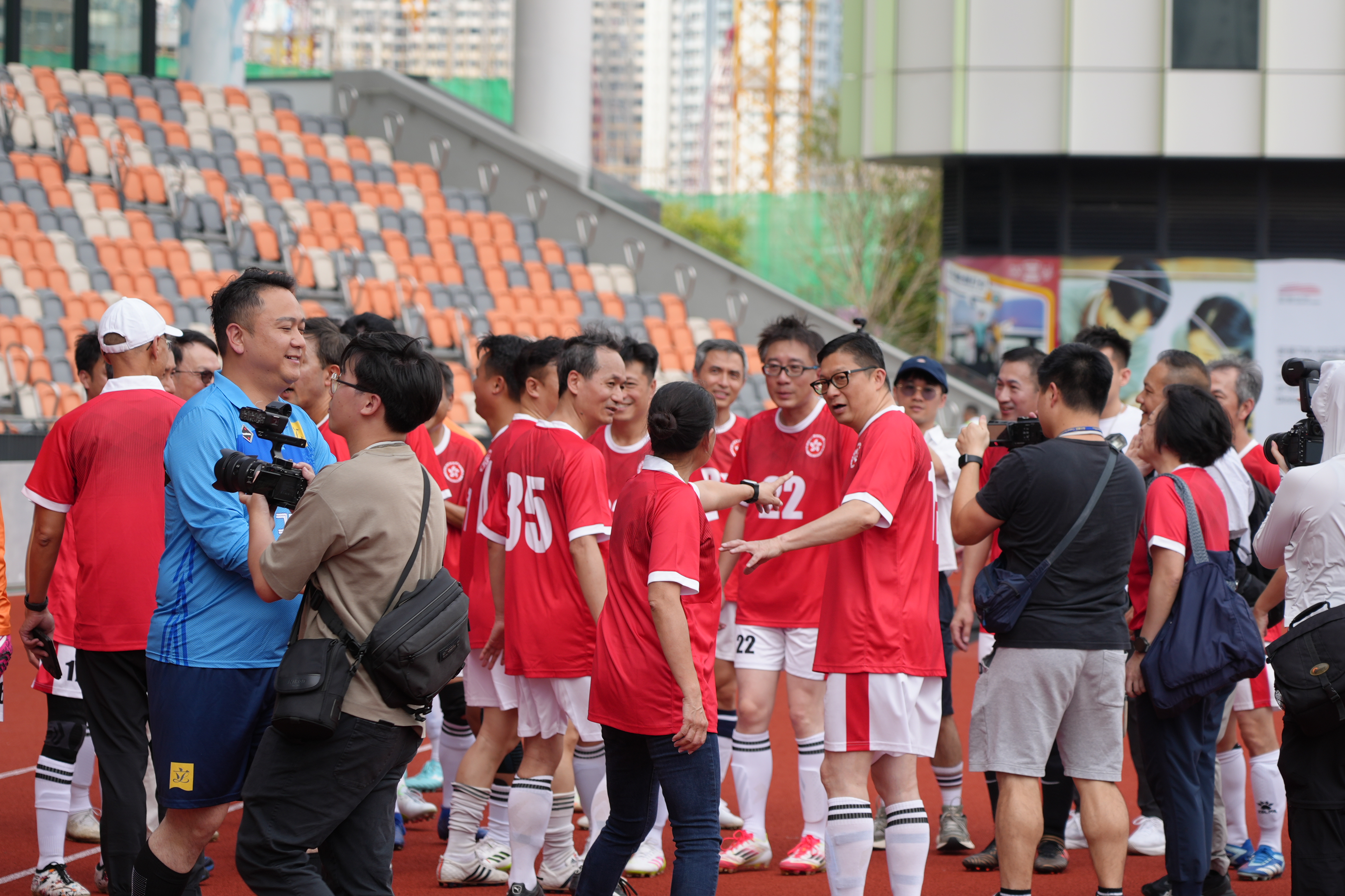 (大公文匯全媒體記者 劉妍伶)今日(4日),特區政府足球隊與立法會足球隊於啟德青年運動場舉行友誼賽。行政長官李家超與立法會主席梁君彥主持開球禮。