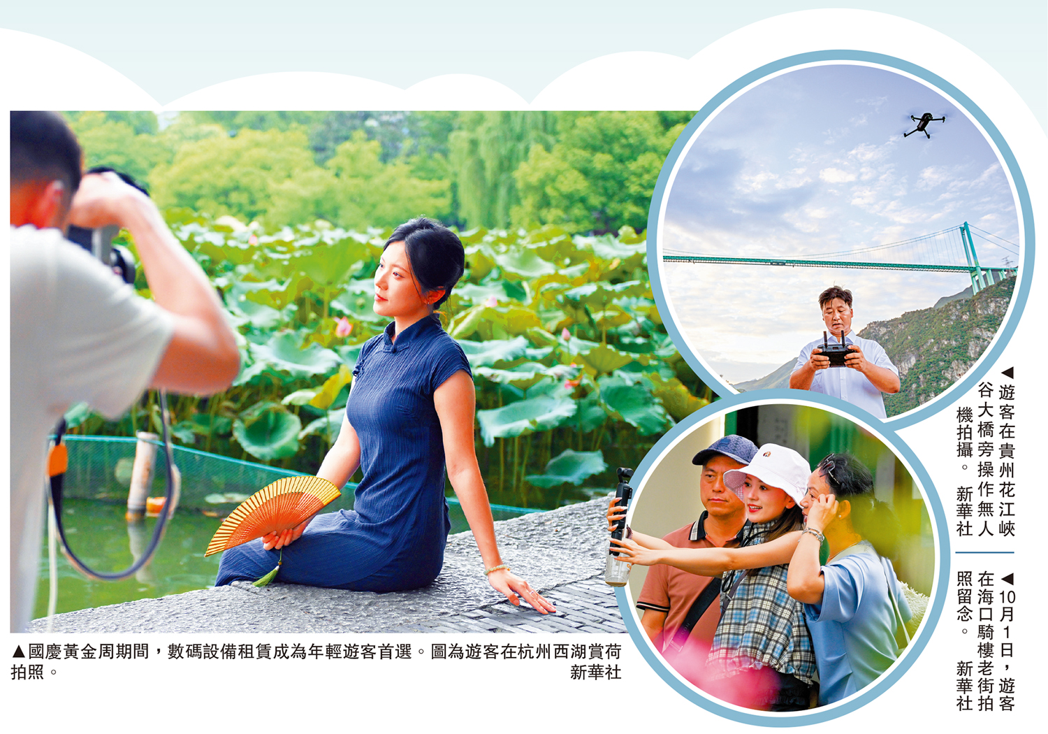 (大公報記者 黃寶儀 廣州報道)用無人機航拍,俯瞰大自然景色;用大疆Pocket拍一個Vlog,記錄下旅途的美好瞬間;用相機拍攝各種氛圍感大片……這個國慶黃金周,廣州的數碼租賃市場表現突出。與長者喜歡直接購買設備有所不同,相較於動輒上萬元(人民幣,下同)的無人機、相機投入,一天只需要數十元到上百元不等的數碼設備租賃正成為不少年輕遊客的首選。