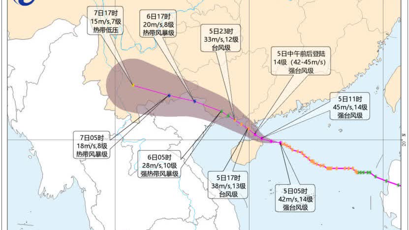 降水預報:5日8時至6日8時,海南島大部、廣東西南部、廣西南部等地部分地區有暴雨到大暴雨,局地特大暴雨(250-320毫米)。