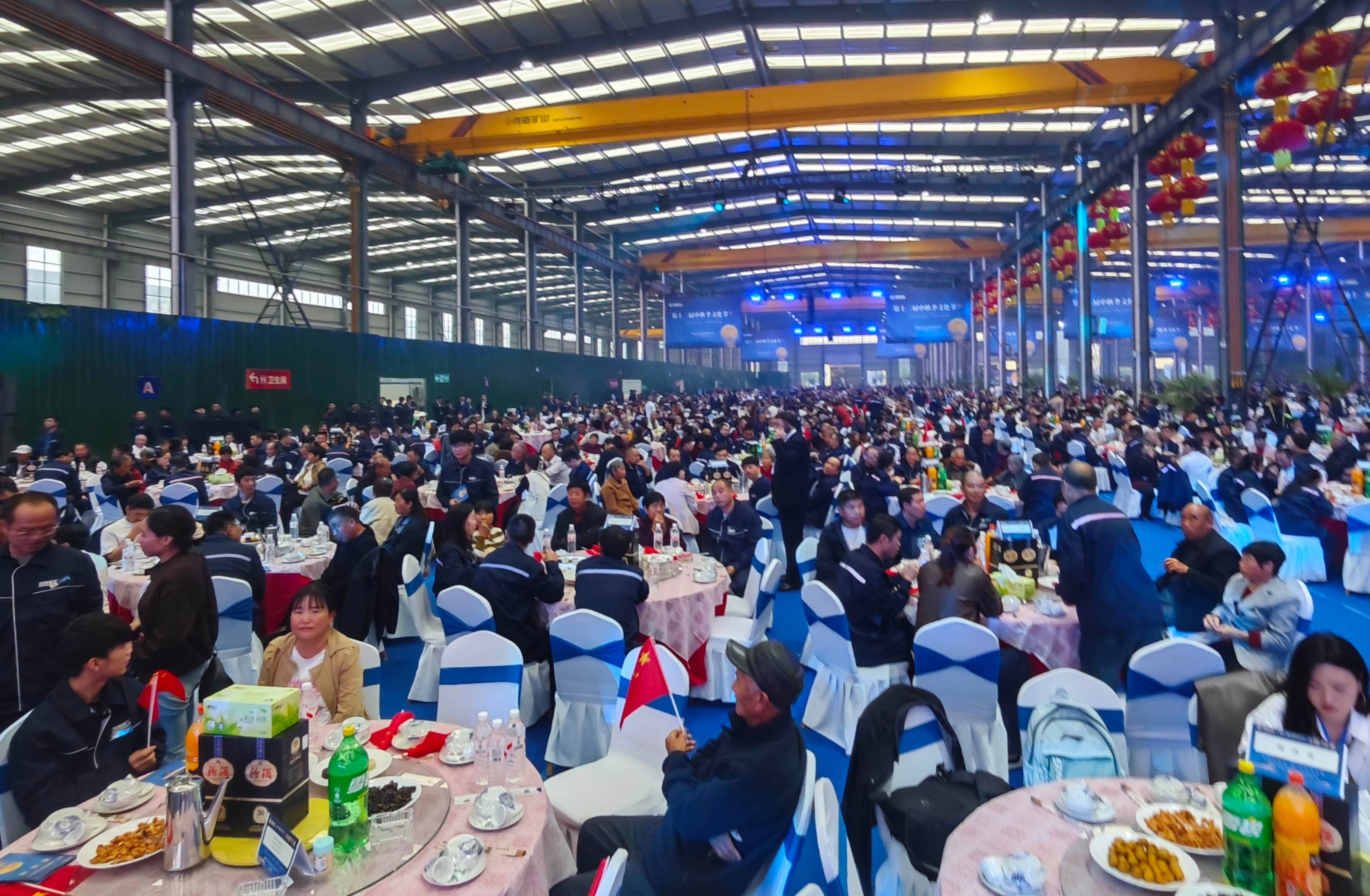 (大公文匯網記者 劉蕊 河南報道)「員工就是企業的核心!」河南省礦山起重機有限公司在長垣市齒傳重工起重生態產業鏈先進製造業示範園的一個車間內,連續兩天擺下逾千桌宴席,逾19000名員工與父母同桌吃團圓飯。河南礦山起重機有限公司創辦人崔培軍逐桌鞠躬,向每位員工父母奉上600元「孝金」及鮮花,兩天花掉1200萬元人民幣。這場已堅持12年的「中秋孝文化節」,再度衝上內地社交平台熱搜,網民封他「最願意發錢的老闆」。