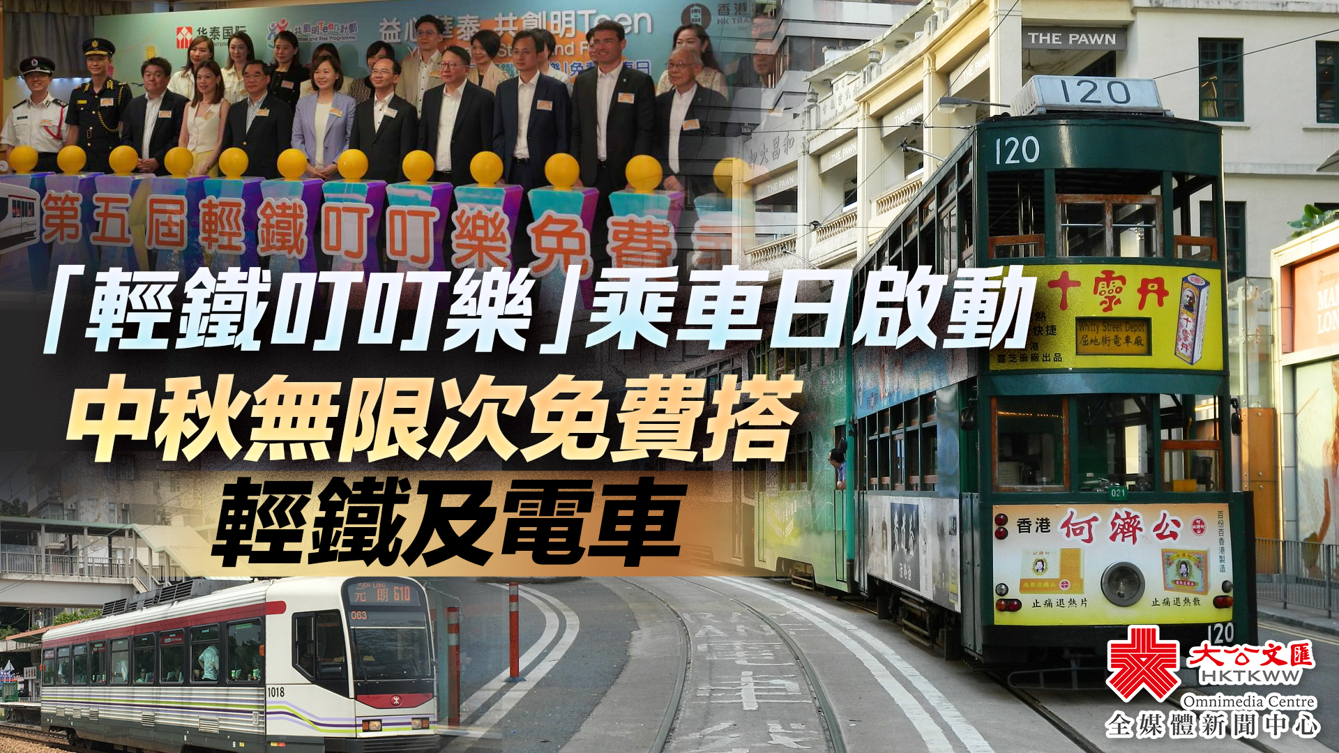 (大公文匯全媒體 記者 周傾芫)叮叮聲不僅屬於港島區的電車,亦來自新界西北區的輕鐵。適逢中秋佳節,華泰國際金融控股有限公司今日(5日)在屯門輕鐵車廠舉行第五屆「輕鐵叮叮樂」免費乘車日啟動禮。政務司司長陳國基主禮啟動儀式。全港市民及遊客可於明日中秋節正日(6日)無限次免費乘搭輕鐵及全線載客電車,與親朋共度佳節。