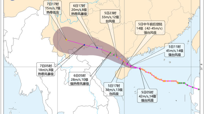 據央視新聞消息,今年第21號颱風「麥德姆」的中心已於今天14時50分前後在廣東省徐聞縣東部沿海登陸,登陸時中心附近最大風力14級(42米/秒,強颱風級),中心最低氣壓965百帕。