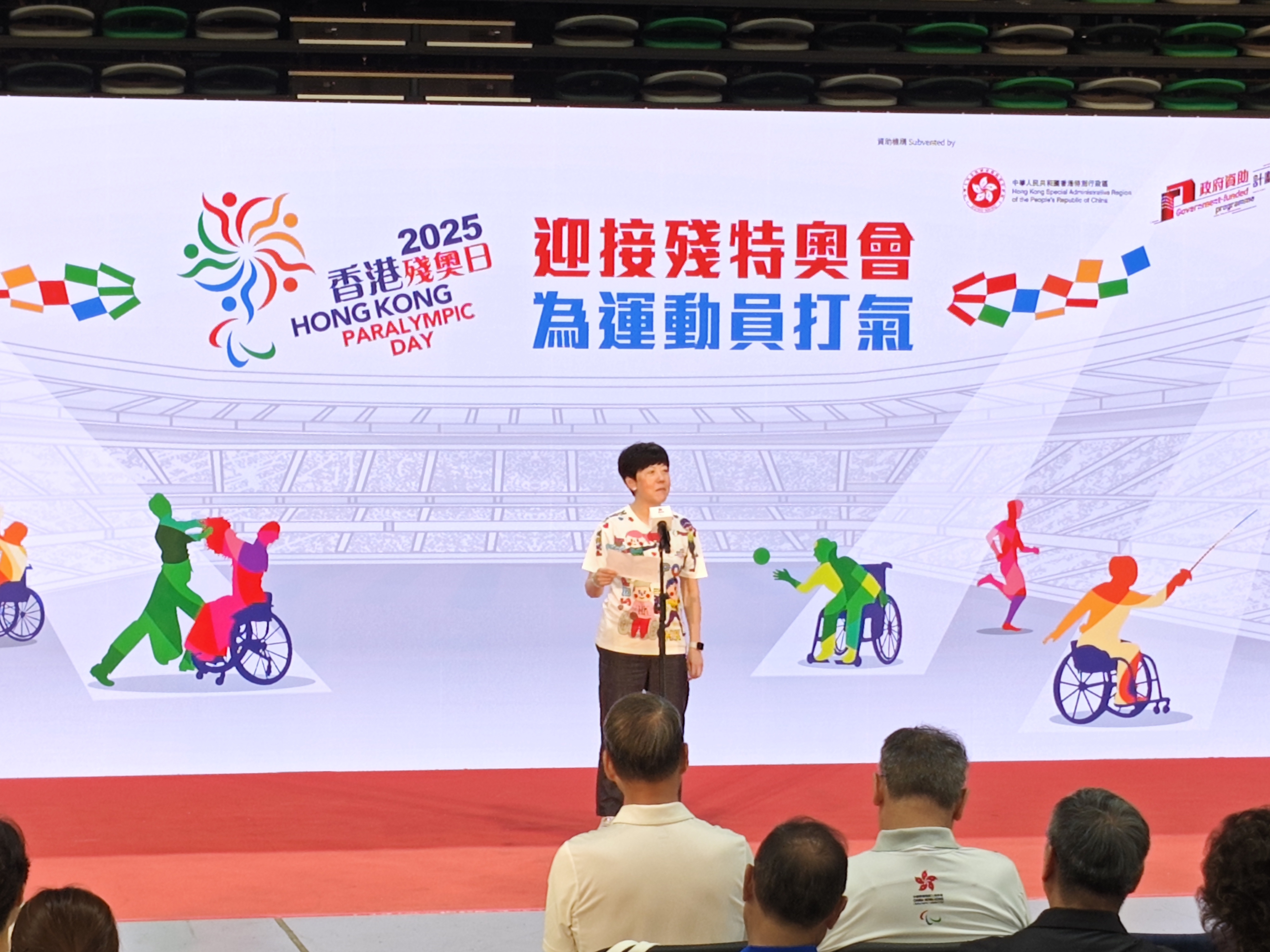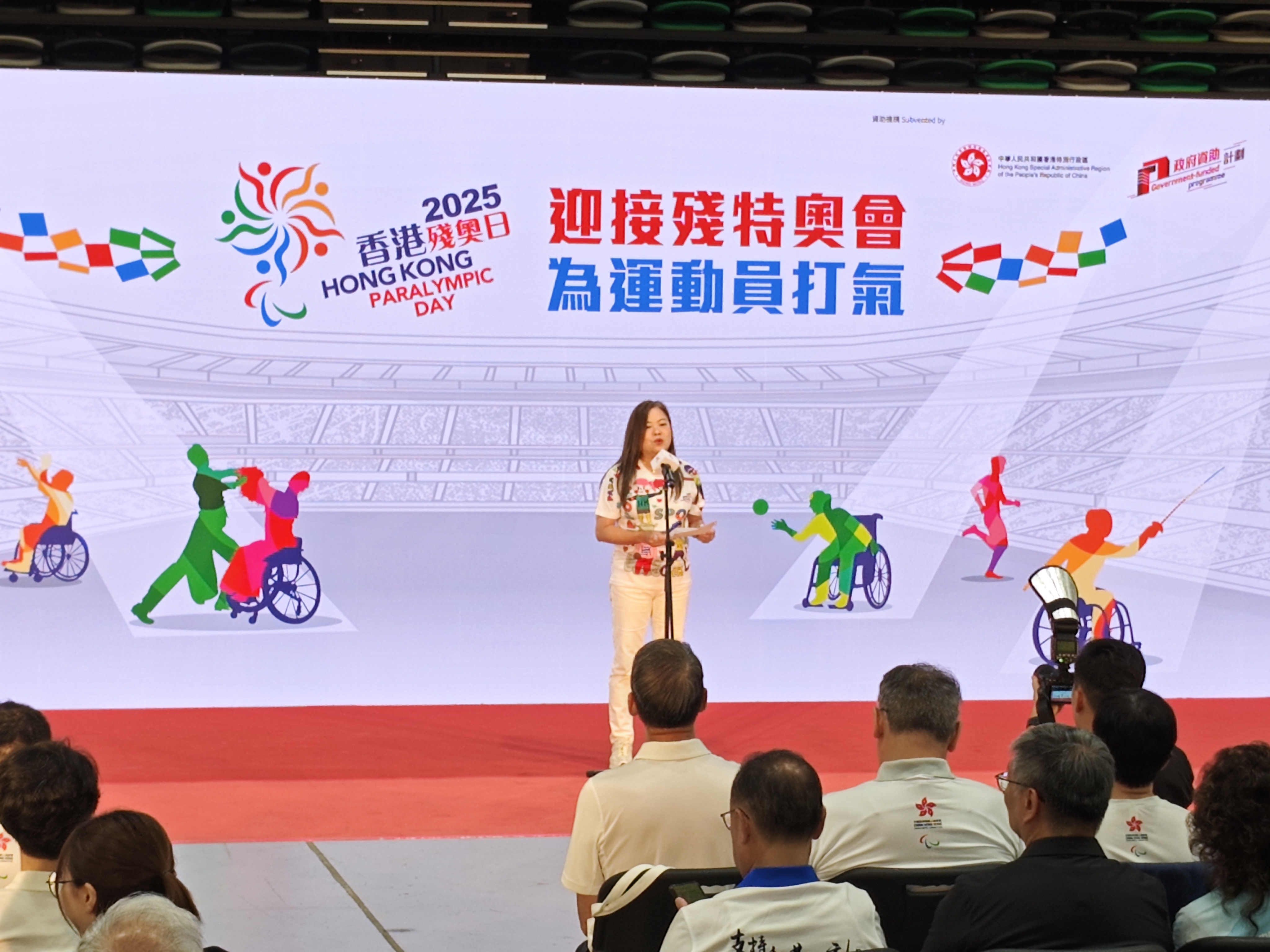 文化體育及旅遊局局長羅淑佩致辭時表示,香港特區政府致力推動體育發展,亦非常關注殘疾運動員的雙軌發展和退役後的生活。她舉例表示,政府2023年與香港殘奧會合作,推行了「殘疾運動員就業及教育先導計劃」,培訓殘疾運動員退役後轉型發展的知識和技能,希望藉此吸引和鼓勵更多殘疾人士參與體育活動,從而促進殘疾體育發展。