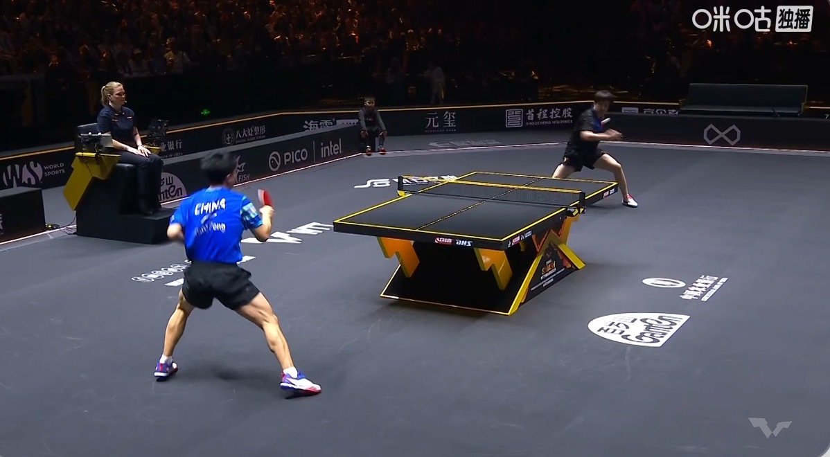 第一局比賽,向鵬以11-9搶佔先機。比賽後,王楚欽向裁判投訴多次閃光燈干擾比賽,無奈地走回休息區。