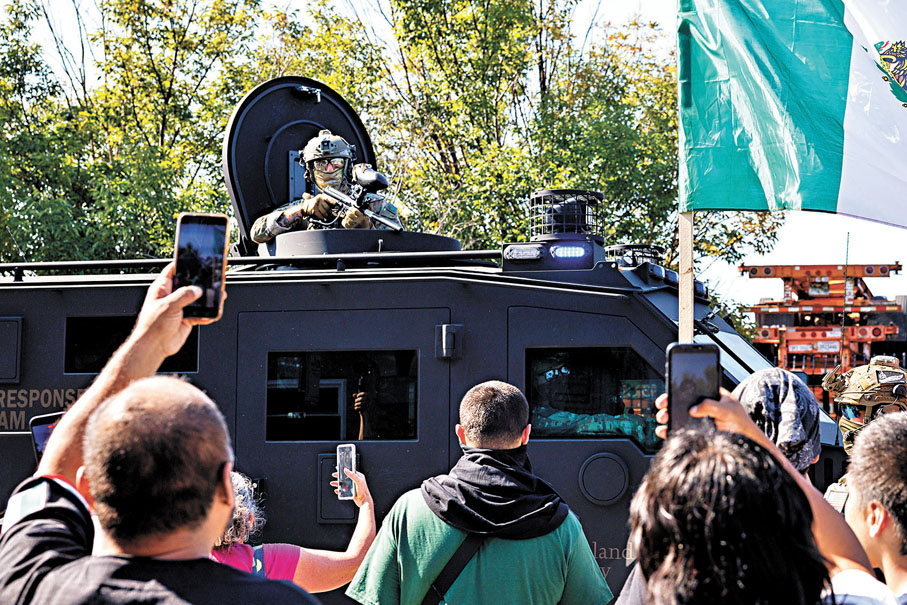 香港文匯報綜合報道,美國芝加哥近日爆發連串抗議活動,反對聯邦移民和海關執法局(ICE)執法,當地時間上周六(10月4日)爆發衝突。多間美媒報道,一批抗議者駕車撞向ICE特工的車輛,特工下車開槍,擊傷一名持槍的女子。總統特朗普迅速以此為藉口,頒令派遣300名國民警衛隊成員進駐芝加哥,揚言保護當地官員及相關設施,令芝加哥成為特朗普與當地民主黨官員衝突升級的又一戰場。