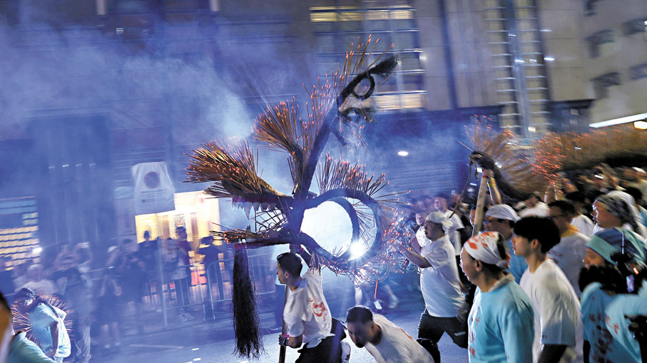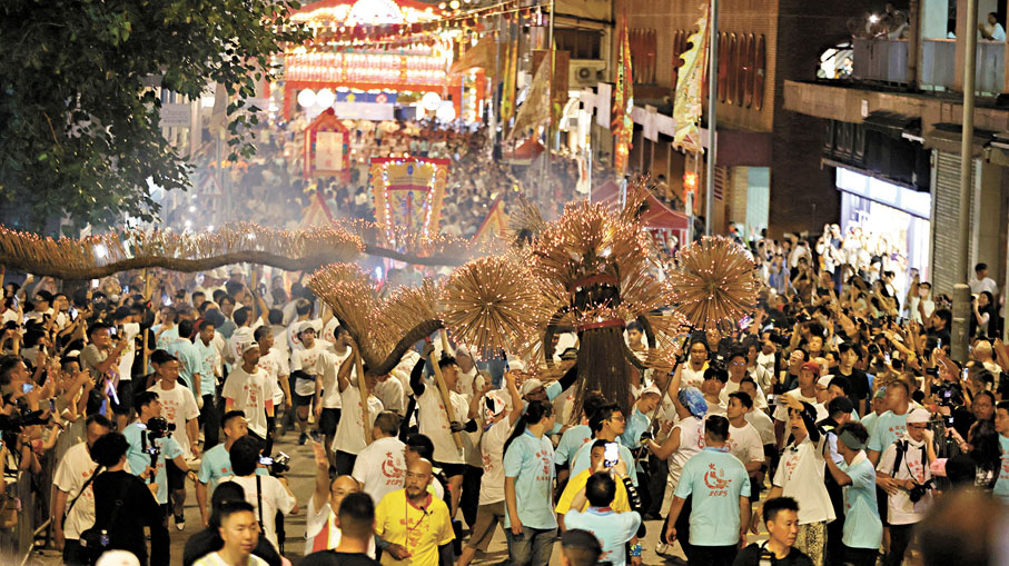 (香港文匯報記者 洪澤楷)被列為非物質文化遺產的大坑舞火龍,昨晚迎月夜開始一連三晚在大坑的大街小巷上演。插上數萬支長壽線香的67米長火龍,伴隨着喧天的鑼鼓聲,由300多人舞動,宛若星河在巷弄間流淌,巡遊期間並展示起結龍團、火龍過橋等招式,寓意家庭團圓、闔家平安,吸引大批巿民及旅客圍觀,有內地旅客帶同女兒到場感受香港的傳統節慶文化,亦有仰慕中華文化的俄羅斯旅客,帶備相機到場拍攝,親自體驗中華傳統文化的魅力,大坑舞火龍盛會已成為香港的著名品牌。主辦單位表示,近年慕名而來的內地及海外旅客增加,並估計連同本地巿民,每晚有數萬人到場觀賞。