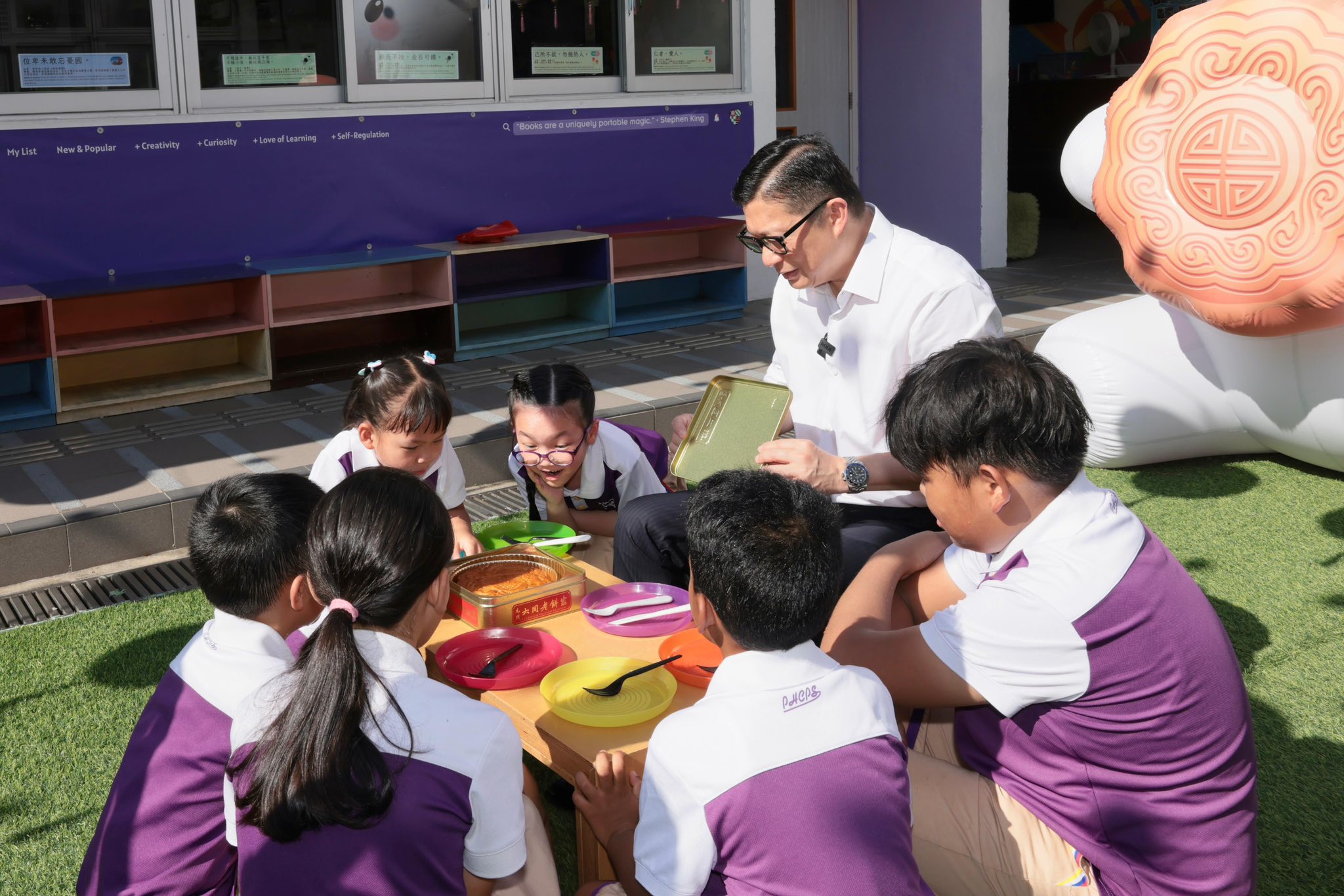 鄧炳強指,聽到小學生形容「十黃月餅就是中秋蛋糕」,認為非常貼切。他形容,雖然年年都吃十黃月餅,但今年與一班小豆丁分享這個「中秋蛋糕」,驚嘆聲笑聲滿載,童真洋溢,別有一番甜味。