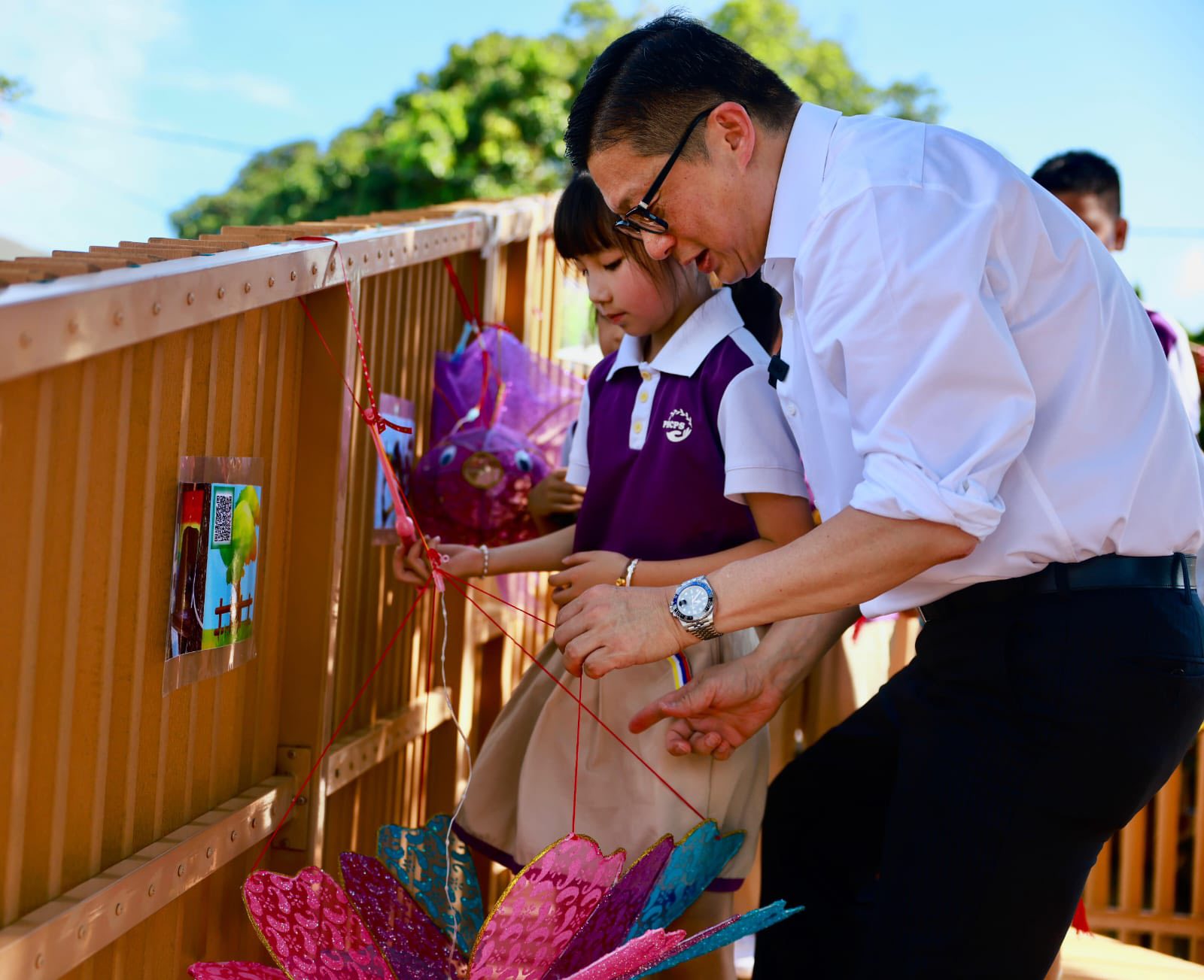 鄧炳強指,自己每年中秋都會去元朗燈籠街買燈籠,再去老字號餅店買十黃月餅。今年鄧炳強特別帶上燈籠與月餅去八鄉中心小學,與一班小學生吃自己至愛的十黃月餅,一起掛燈籠布置學校樹屋。