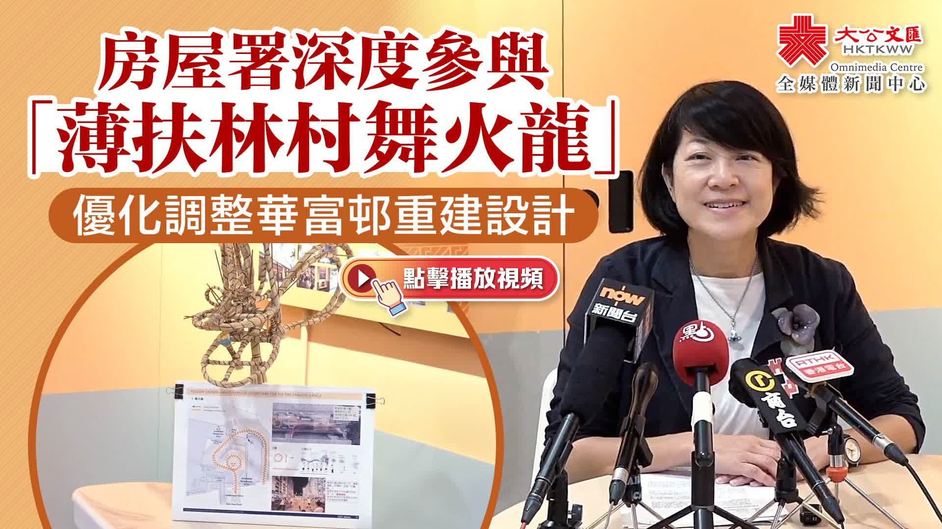 (大公文匯全媒體記者 周傾芫)房屋署總建築師梁喜蓮今日(6日)下午與傳媒會面,闡述華富邨重建項目將如何適應與承傳「薄扶林村舞火龍」非物質文化遺產。梁喜蓮表示,房屋署必定讓社區文化歷史傳承下去,不會因重建讓這些寶貴的香港故事消失。