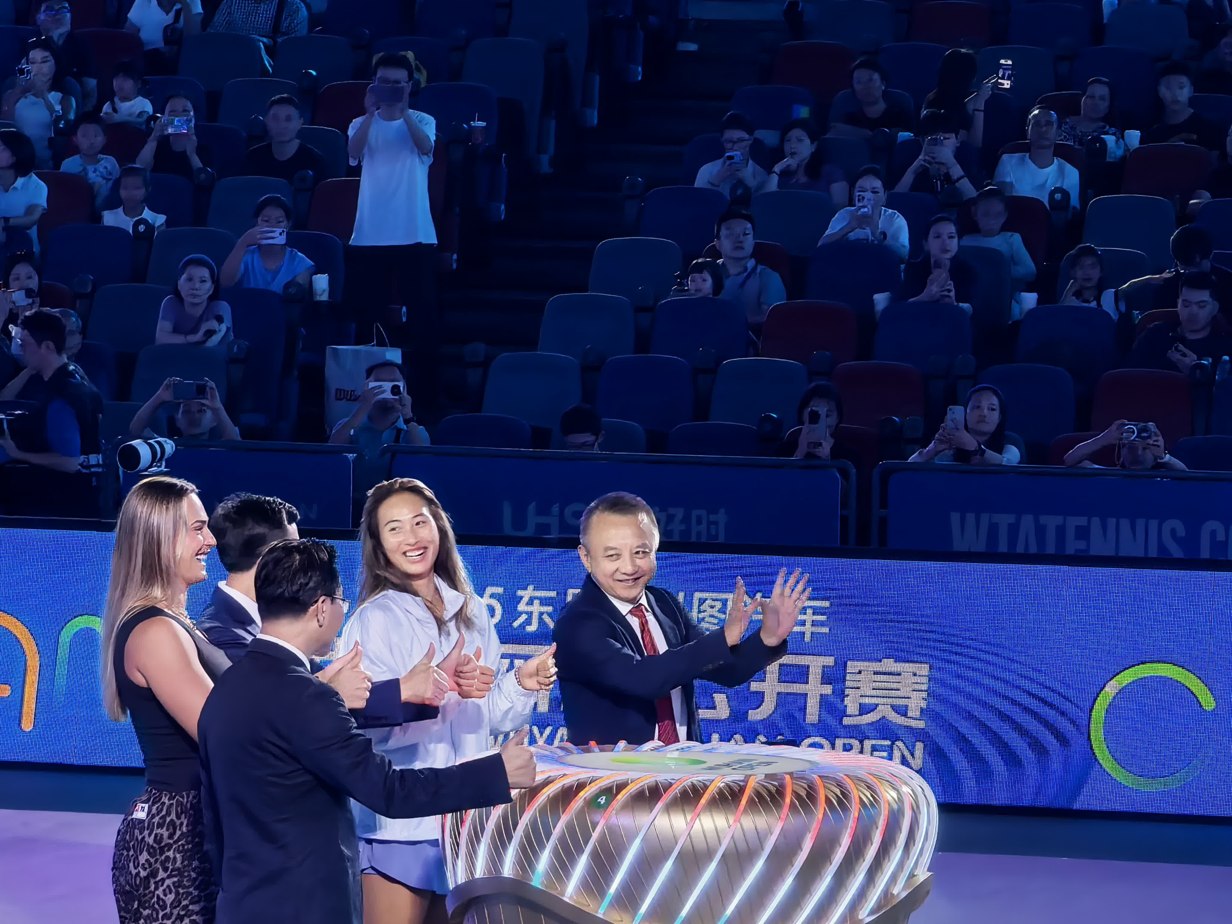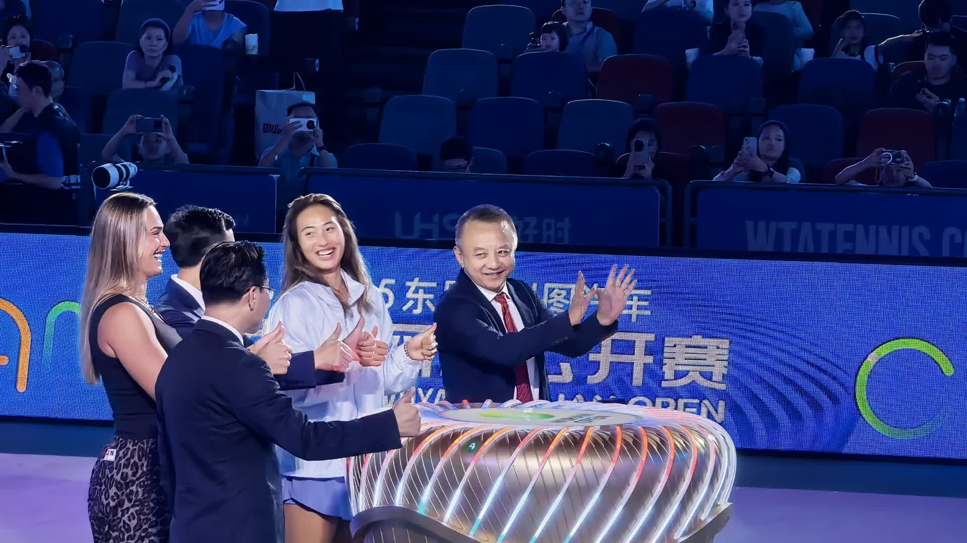 (大公文匯網 記者 張帥、歐陽思柔 武漢報道)2025武漢網球公開賽開幕式,10月6日晚間在光谷國際網球中心中央球場舉行。中國金花鄭欽文因右肘傷勢日前宣布退出今年武漢網球公開賽,不過依然出現在開幕式現場,給現場觀眾帶來不小的驚喜。當晚,鄭欽文與賽會三冠王、現WTA單打世界排名第一的薩巴倫卡共同啟動本屆賽事。