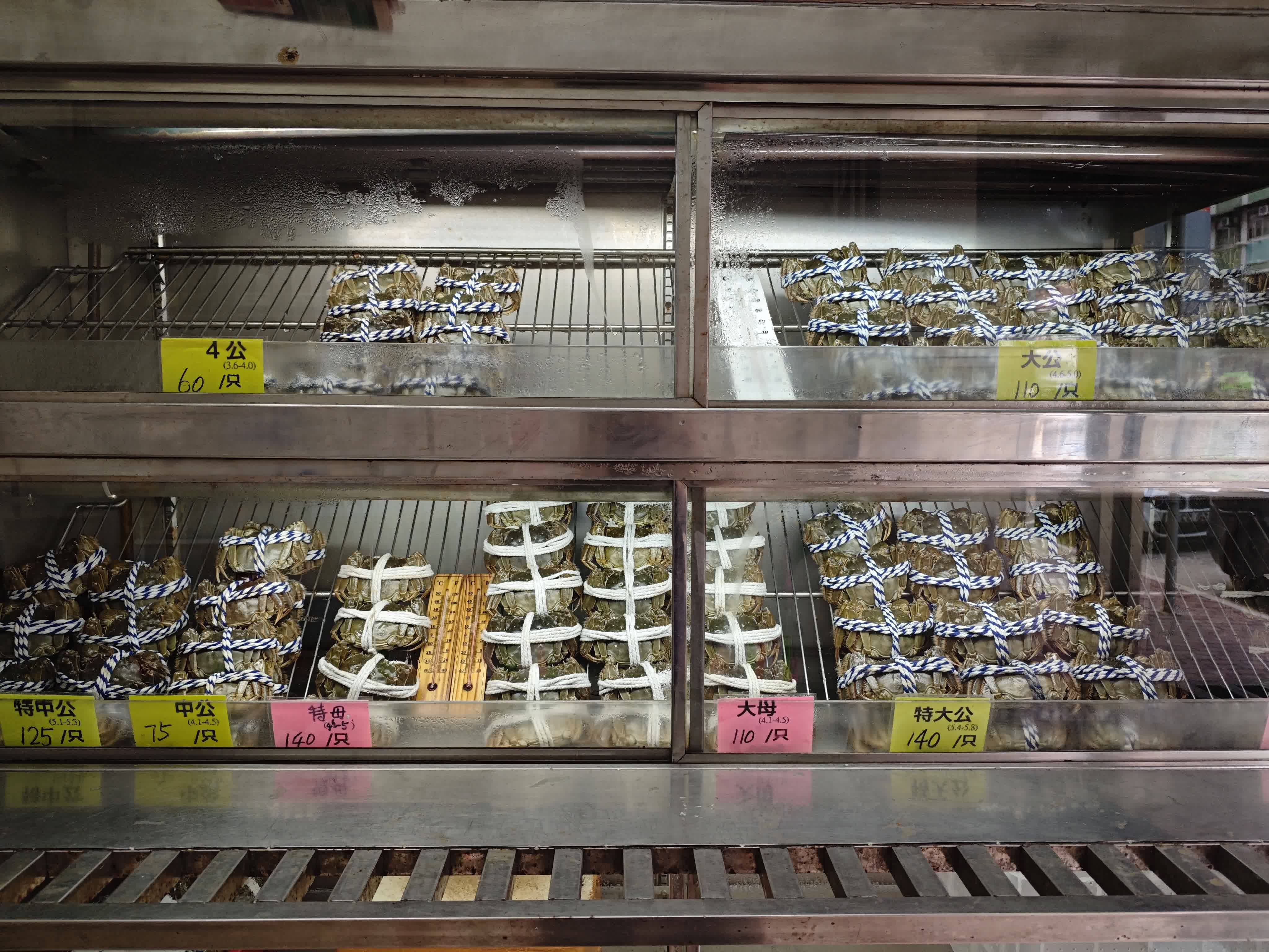 記者今早在位於深水埗的旭海大閘蟹專賣店見到,店內將螃蟹依據大小、公母分類,其中「小公」僅賣100元三隻,而一隻「特母」則可賣到140元。店長楊女士表示,他們目前售賣的是首批從內地直運到香港的大閘蟹,全部是合法進口。楊女士指今日正值中秋,食蟹是傳統,相信「會有好多街坊賣蟹返回食」。