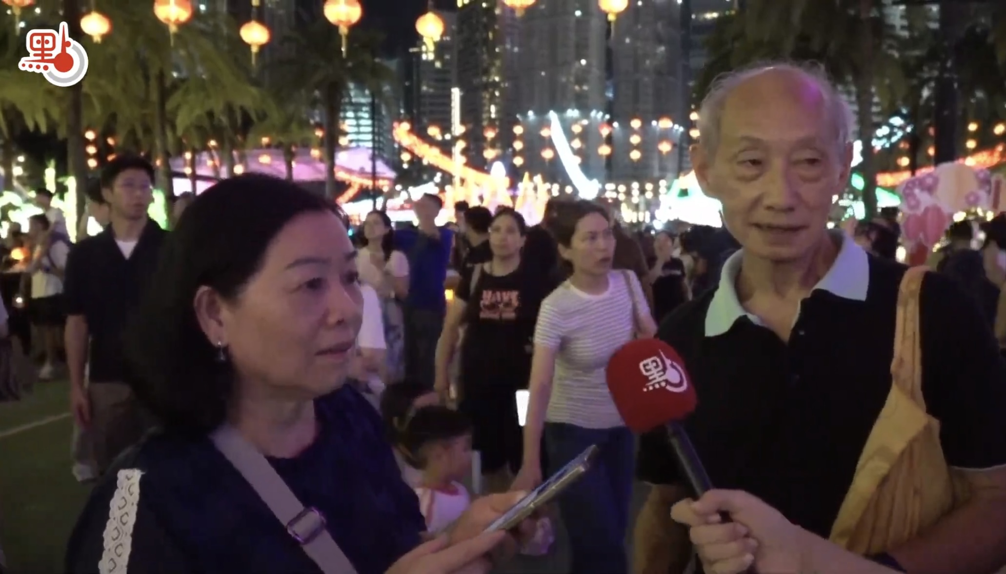 香港市民陳先生和太太今日來維園賞燈共慶佳節,他們表示,前來觀賞目的隨性自在,印象比較深刻的彩燈數「水中世界」,其水母和魚的造型都「好靚」。他們還提到這兩日天公作美,香港中秋節氛圍相當不錯,而中秋節對於中國人而言,意味着團圓和開心。