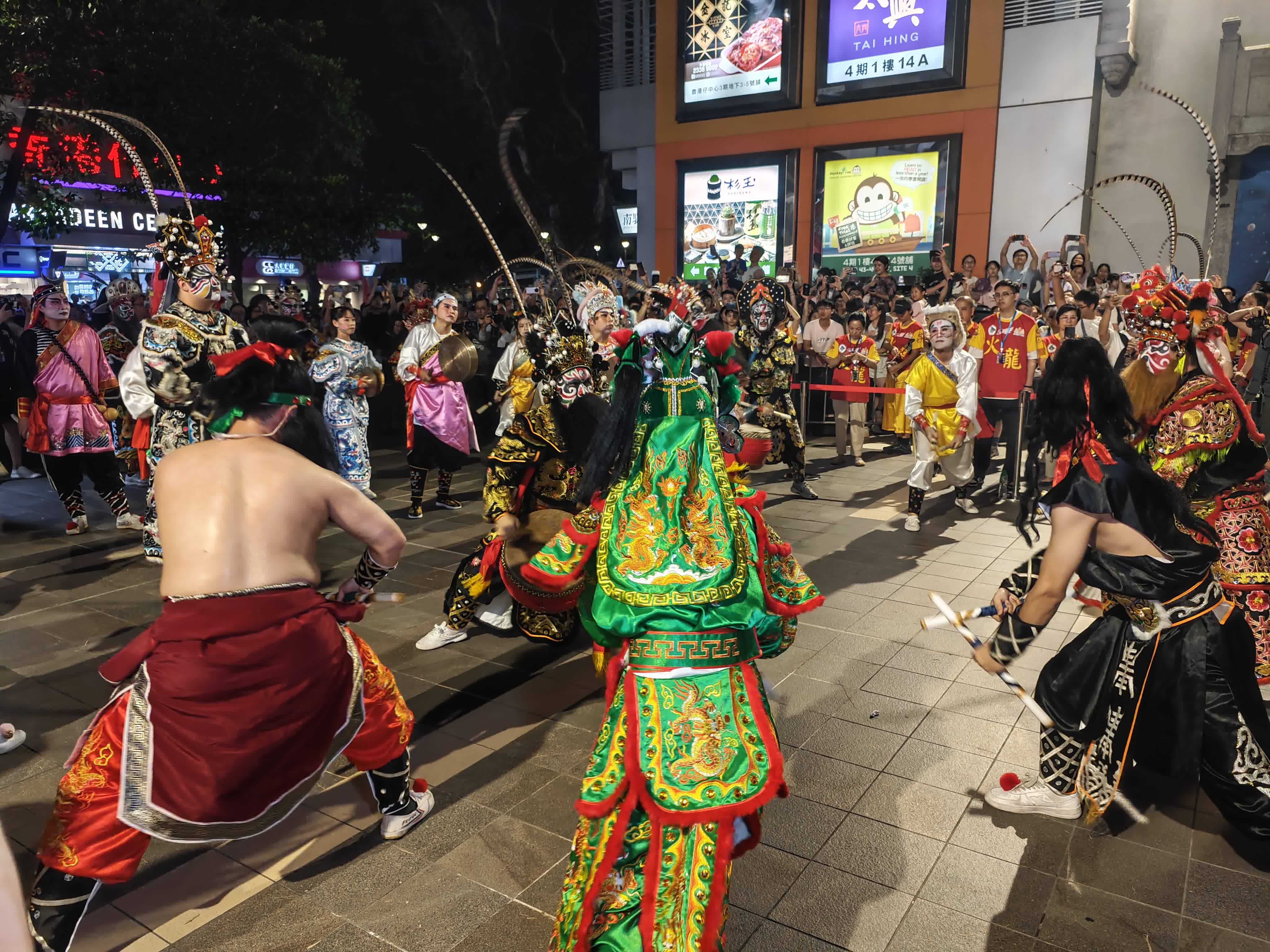 晚上7時半左右,盛會以英歌舞開場,主辦方特別邀請來自深圳的「潮搏英歌隊」來港表演,現場舞蹈大開大合,剛勁有力,為火龍巡遊拉開序幕。