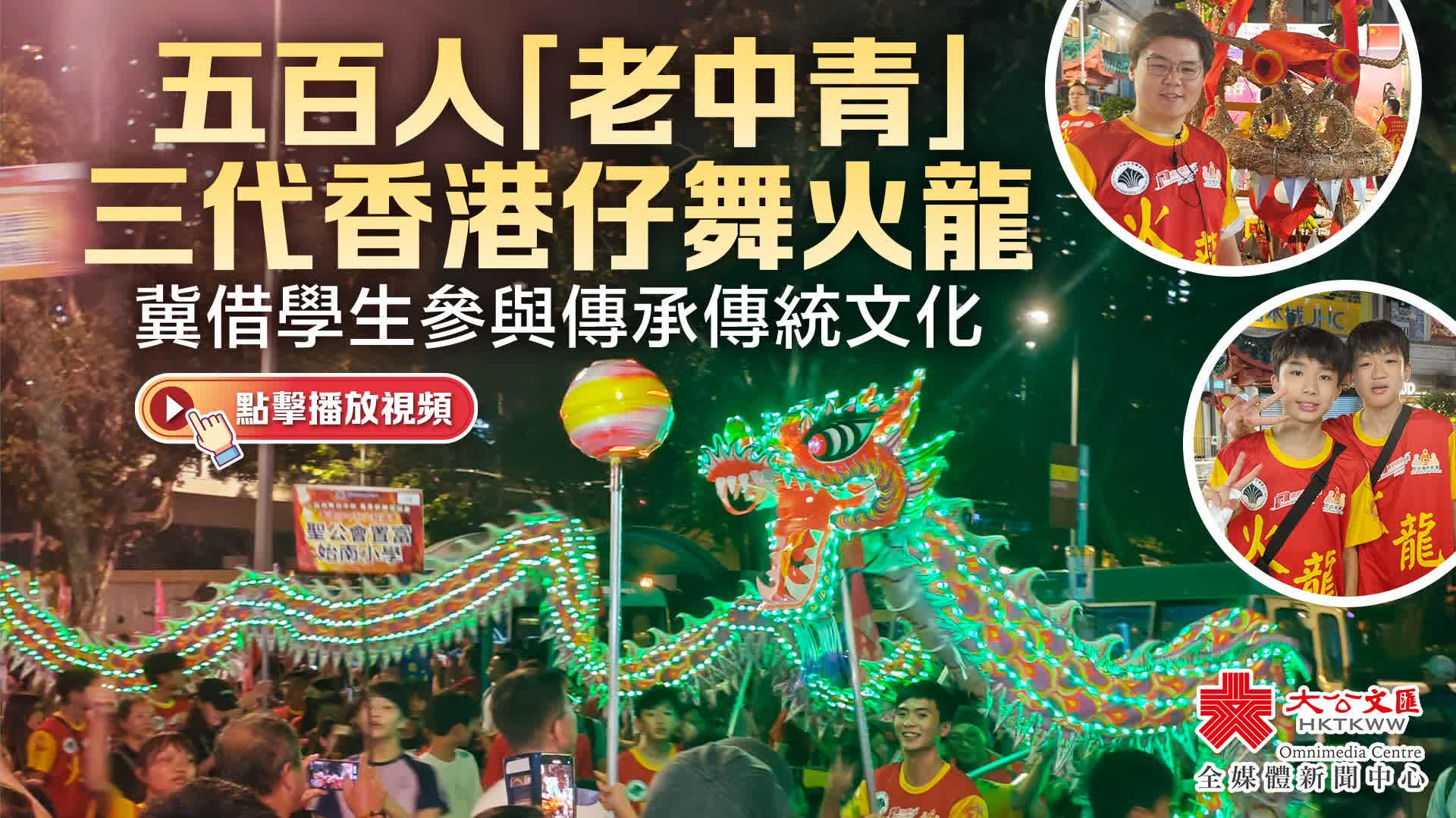據悉,本次巡遊匯聚包括香港正毅龍獅體育會、徐逸昇龍獅會、黃卓源龍獅會、吳江南國術體育會的四大龍獅體育會,以及來自五所南區學校的學生,組成「老、中、青」三代同堂的舞龍隊伍。記者在現場見到,除傳統火龍外,還有「燈龍」、「發光龍」、「花式龍」等使用電動發光裝置的新式火龍,形式新穎有趣,極受歡迎。