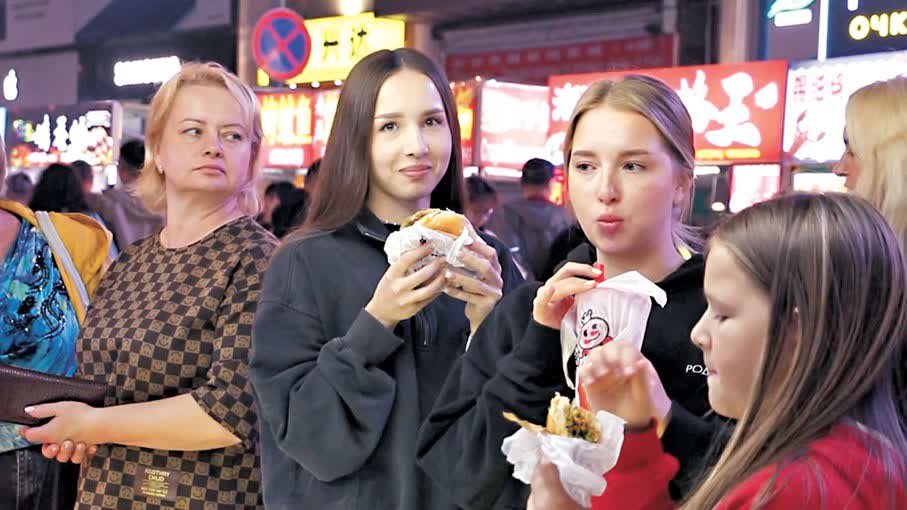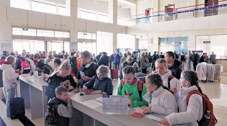 (香港文匯報記者 于海江 哈爾濱報道)中俄30天免簽政策持續激發雙向旅遊熱潮,國慶黃金周也不例外。中國口岸城市成為俄羅斯遊客熱門旅遊目的地,黑河、撫遠、綏芬河等湧入大批俄羅斯遊客。其中,黑河口岸出入境旅客達到32,000餘人次,其中10月1日、2日出現客流高峰,單日達5,000餘人次。先購物再品美食,早上來晚上回,有俄羅斯遊客感覺不過癮,還要在中國住兩宿再回家。此外,俄羅斯遊客與赫哲族人互動,載歌載舞共同感受民族文化,與中國書法家共寫書法,與中國朋友學習製作花燈、月餅和香包,在溫馨互動中感受着中國傳統節日的獨特韻味。