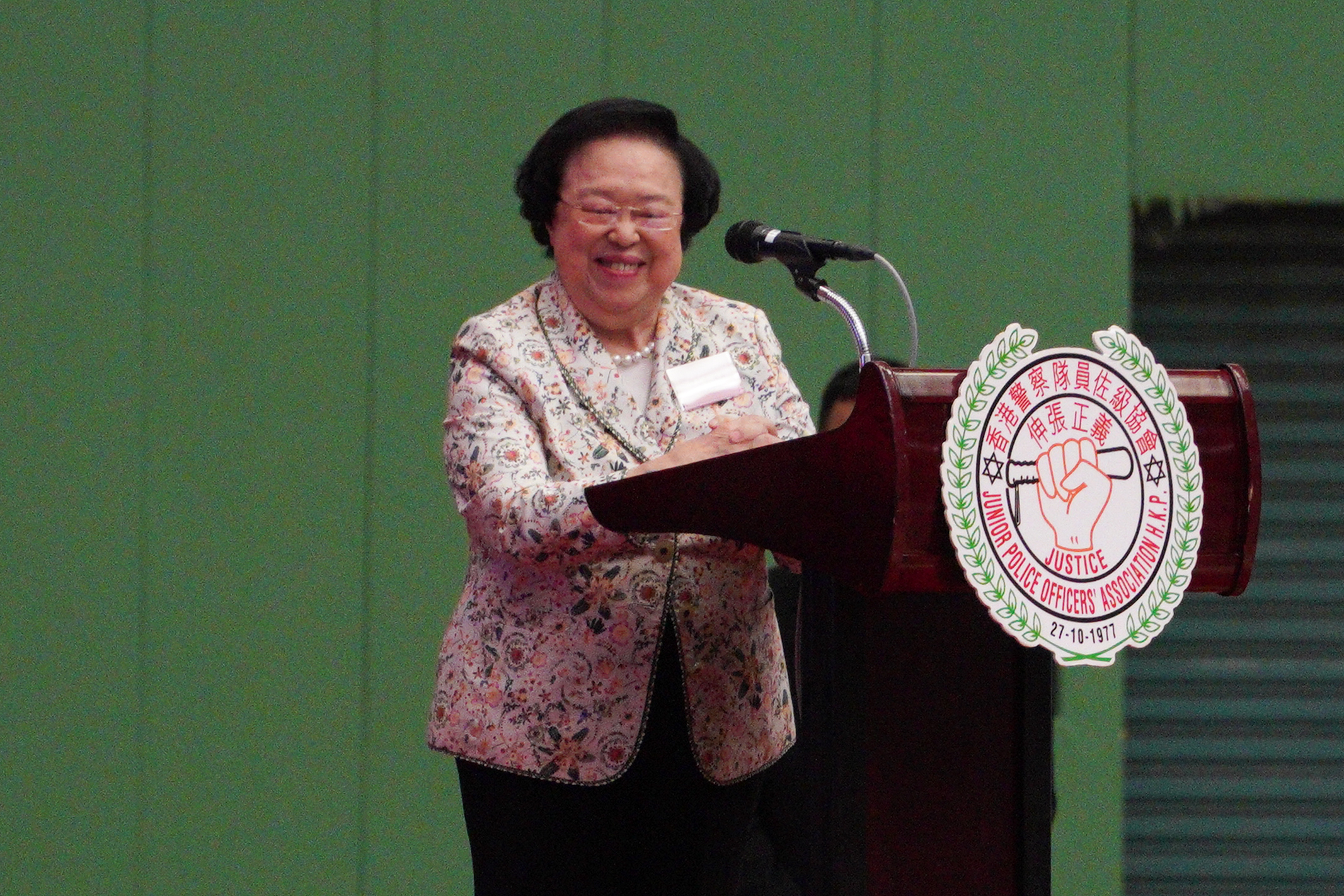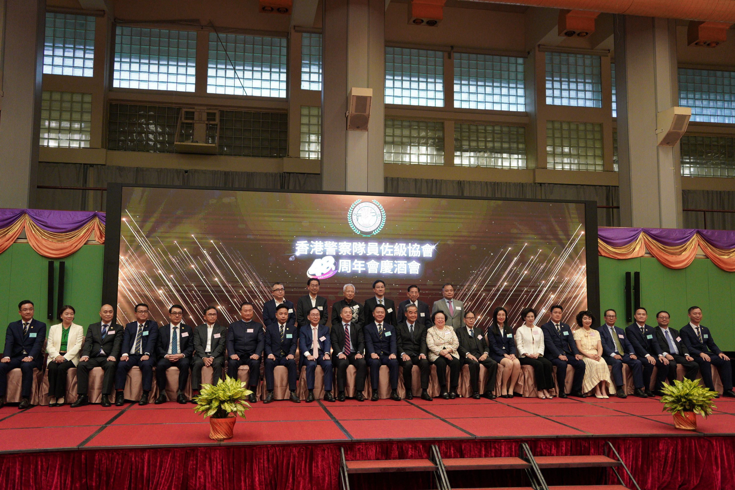 譚惠珠表示,48年白駒過隙,今日的周年酒會見證兩位主席的交接。香港正邁向發展新格局,包括地緣政治認識、本地產業轉型等方面都提出升級,各領域的發展需要有經驗的業界人士帶領。她續指,相信各位協會主席和成員一定能發揮他們的智慧和凝聚力去適應AI科技網絡世界,同時裝備自己以迎接工作中的新挑戰,繼續保護市民生命財產及國家安全。