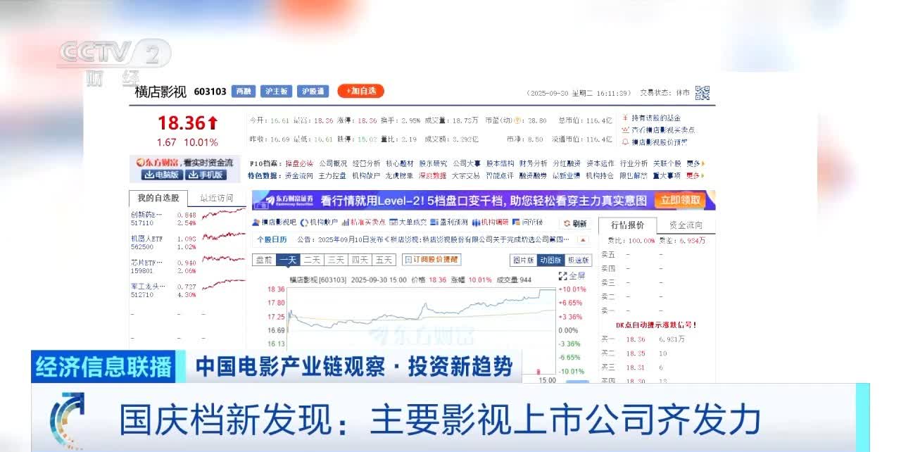 記者注意到,今年國慶檔電影的背後幾乎集齊了國內主要影視上市公司。假期A股休市,但在節前,影視板塊已出現明顯升溫跡象。在節前最後一個交易日,橫店影視收盤漲停,華策影視上漲5.57%,光線傳媒、北京文化等小幅跟漲。