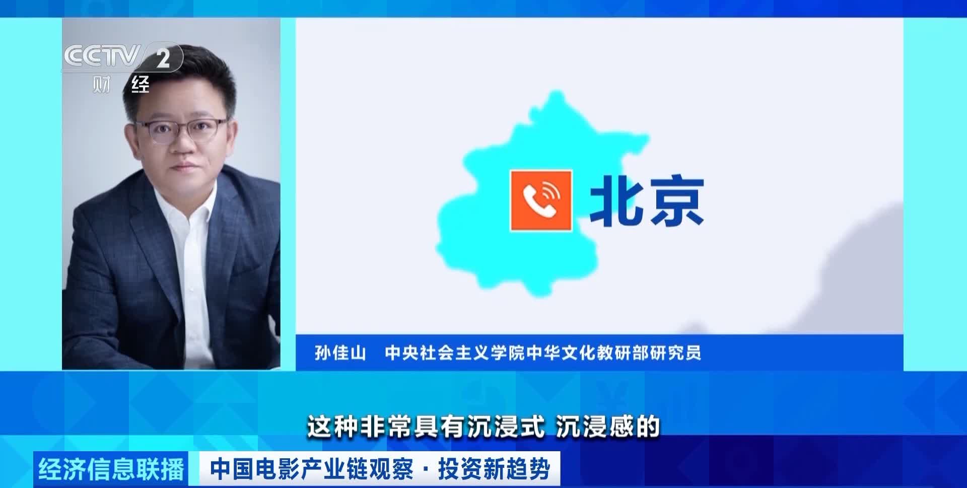 中央社會主義學院中華文化教研部研究員 孫佳山:3D、4D觀影體驗,包括和增強現實技術相結合的具有沉浸式、沉浸感的相關文旅體驗項目,其實都是電影產業發展外溢效應的鮮活縮影。從投資的角度來看,對於電影項目的選擇越來越寬泛,將文化和科技有效融合的效能釋放出來。