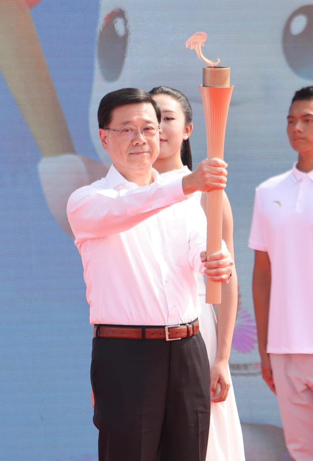 李家超於社交平台發文,指自己以十五運會組委會和殘特奧會組委會執行主任、香港特區行政長官身份,與廣東省委書記黃坤明;十五運會組委會主任、國家體育總局局長高志丹;殘特奧會組委會主任、中國殘疾人聯合會理事長周長奎;十五運會組委會和殘特奧會組委會執行主任、澳門特區行政長官岑浩輝,以及廣東省政府黨組書記孟凡利一同點燃十五運會和殘特奧會聖火。十五運會組委會和殘特奧會組委會副主任兼秘書長、香港特區政務司司長陳國基則代表香港特區受領十五運會和殘特奧會火種。