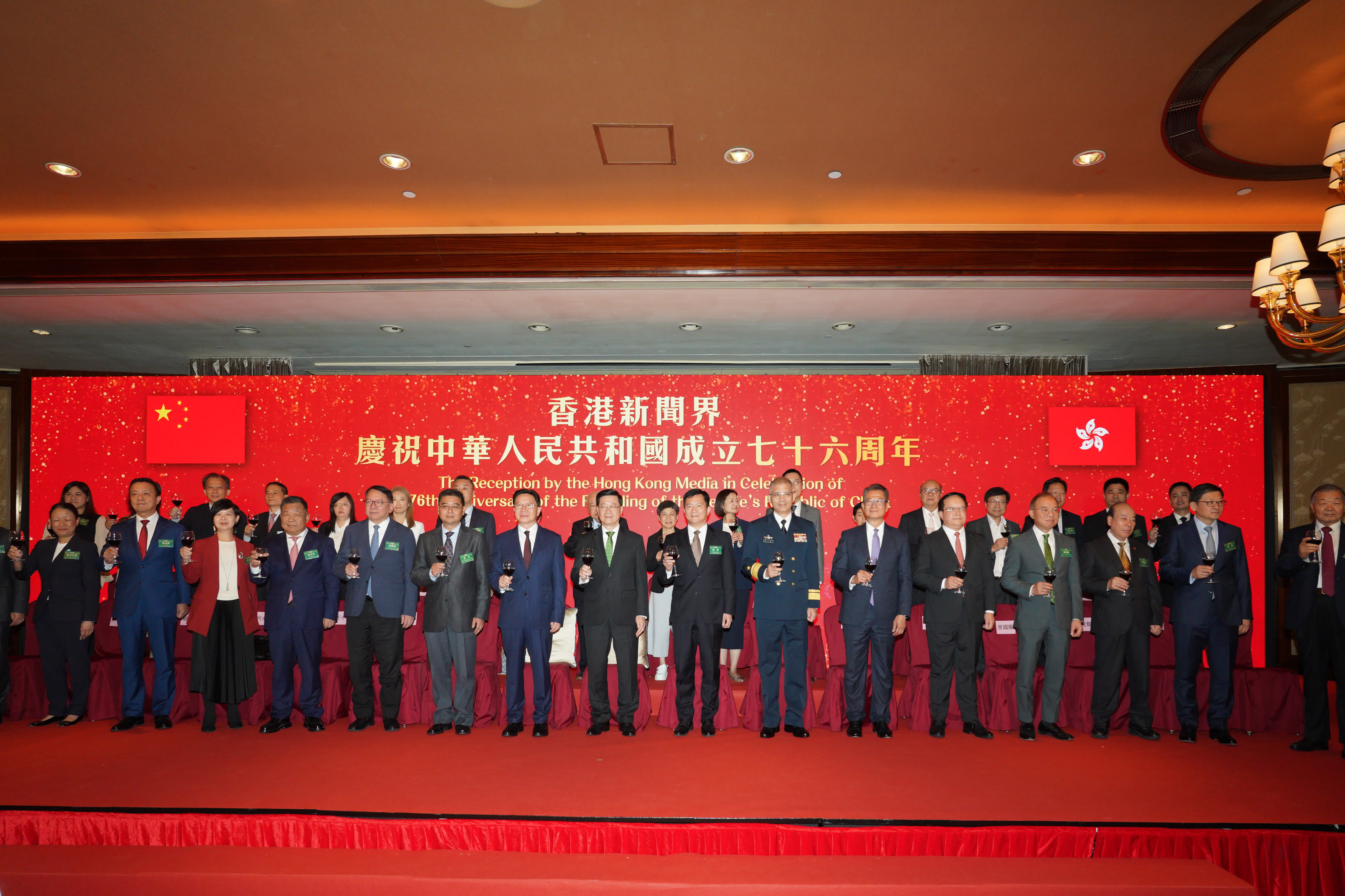 10月9日,香港新聞界舉辦慶祝中華人民共和國成立76周年活動。香港特別行政區行政長官李家超、中央政府駐港聯絡辦主任周霽出席並致辭。