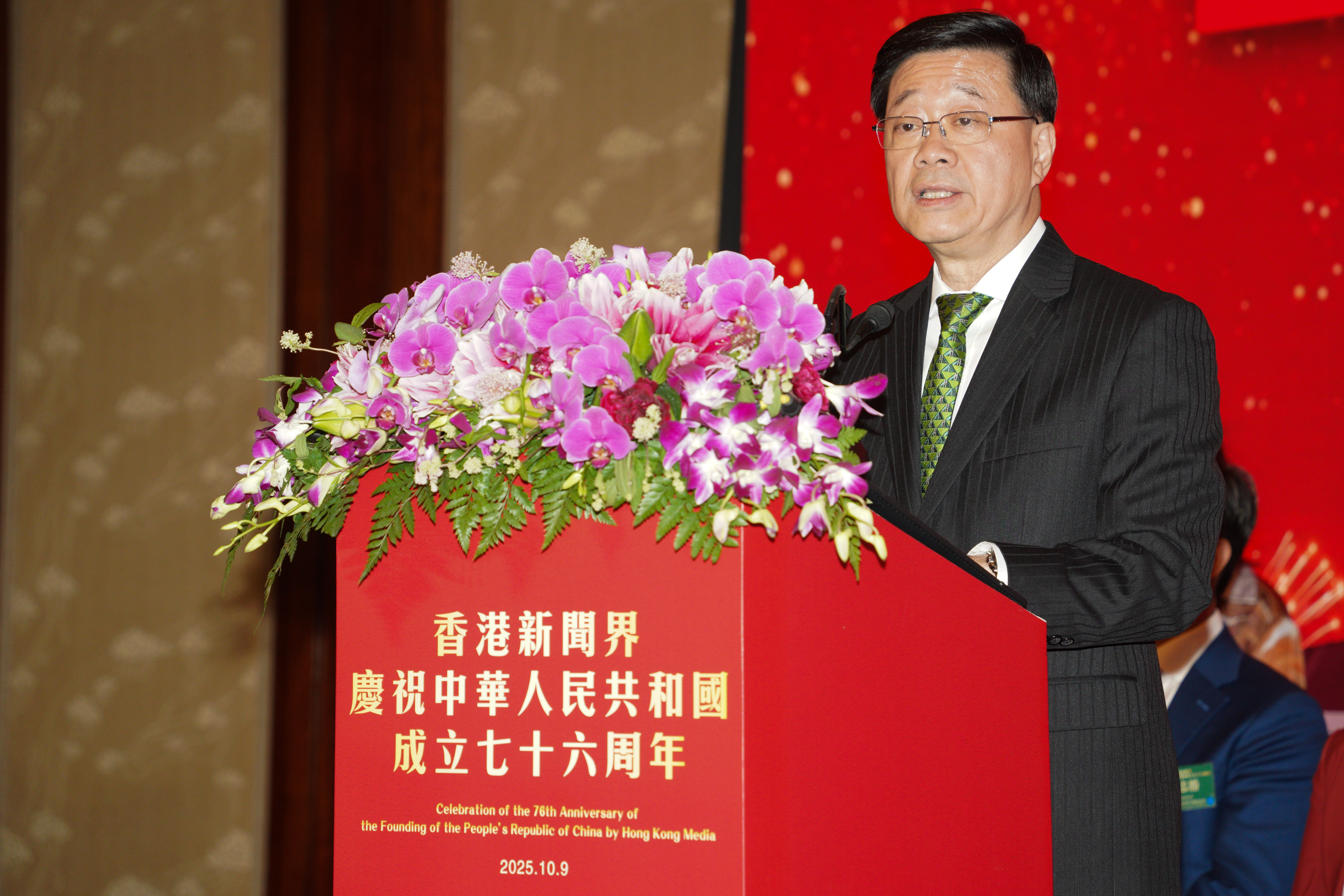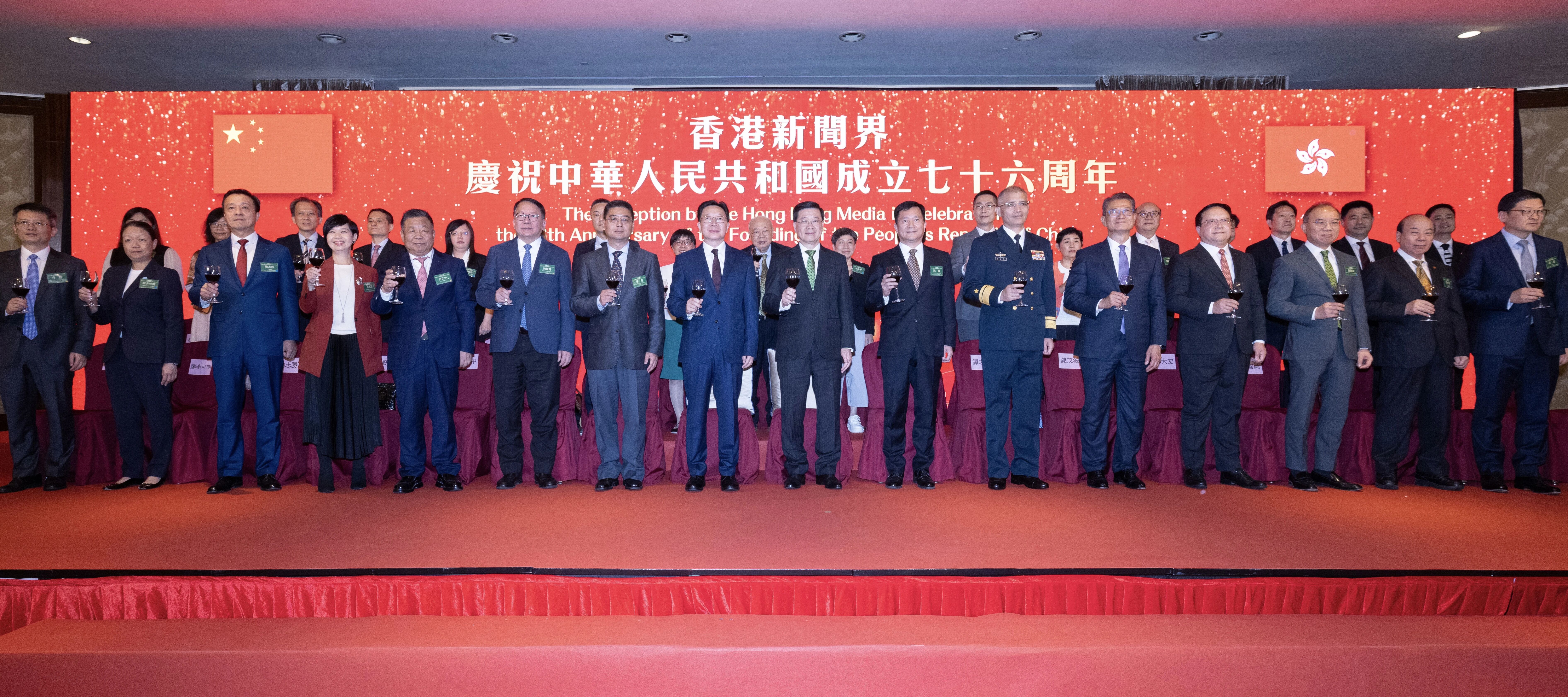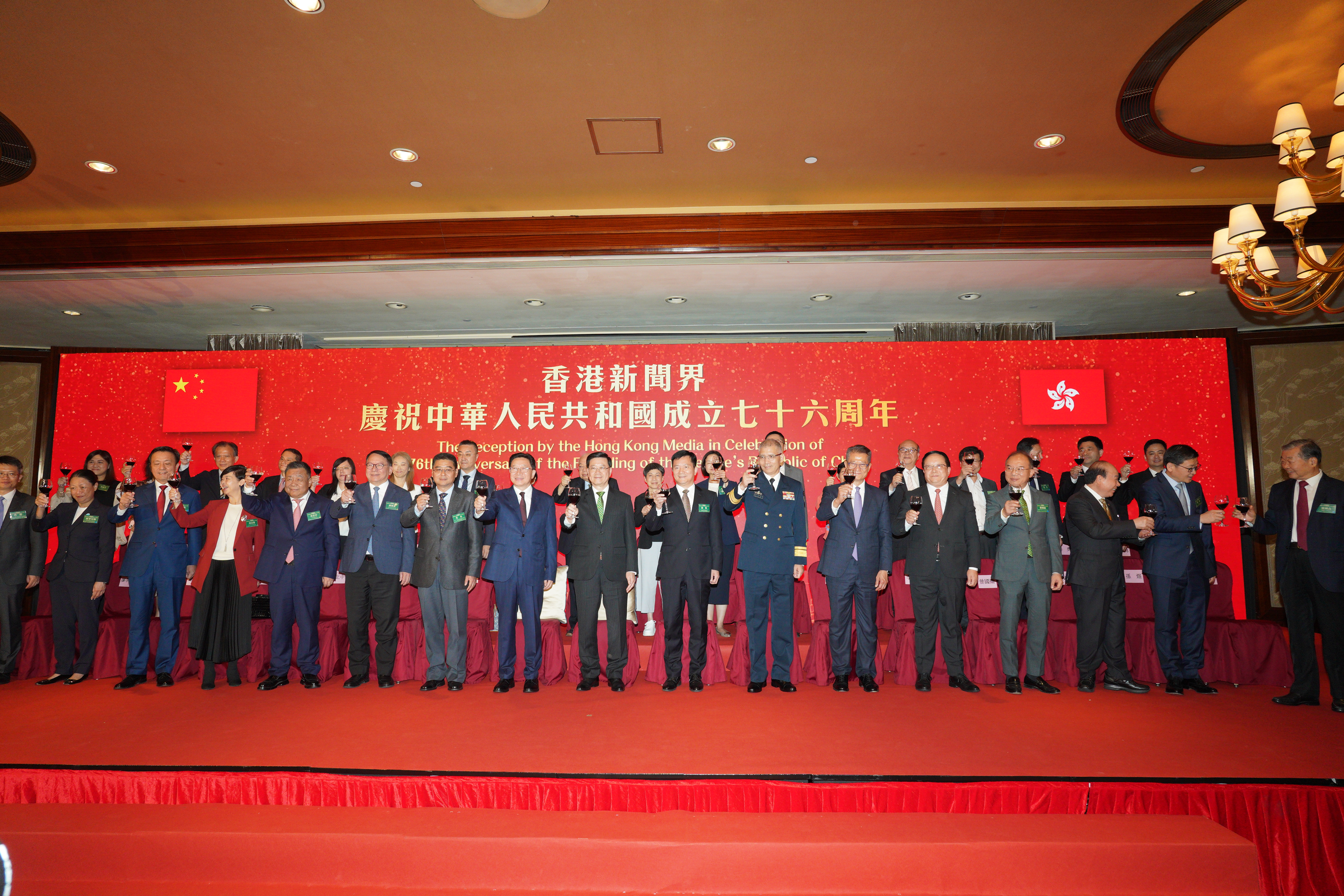 大公文匯全媒體報道,10月9日,香港新聞界慶祝中華人民共和國成立76周年活動隆重舉行。香港特別行政區行政長官李家超,中央人民政府駐香港特別行政區聯絡辦公室主任周霽,中央人民政府駐香港特別行政區維護國家安全公署副署長陳楓,中華人民共和國外交部駐香港特別行政區特派員公署副特派員花有,中國人民解放軍駐香港部隊副司令員譚志偉以及政務司司長陳國基,財政司司長陳茂波,紫荊文化集團董事長許正中,香港新聞界國慶籌委會主任委員、香港新聞工作者聯會主席、香港大公文匯傳媒集團董事長李大宏等出席主禮。近500位社會各界賢達與新聞界同仁齊聚一堂,共同祝願祖國繁榮昌盛,香港社會持續穩定發展。