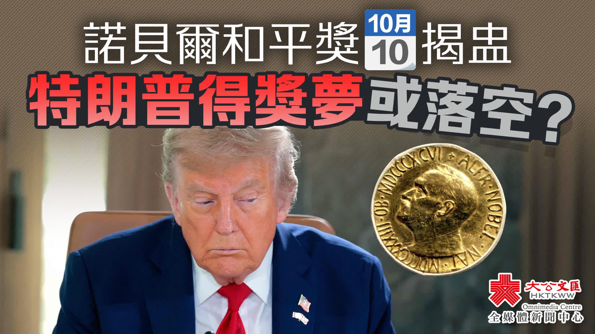 大公文匯全媒體報道,備受矚目的諾貝爾和平獎將於香港時間10月10日下午5時左右揭盅。挪威諾貝爾研究所(Nobel Institute)今日(9日)表示,挪威諾貝爾委員會已於本月6日正式決定本屆諾貝爾和平獎得主。這意味着,在美國總統特朗普嘗試促成以色列與哈馬斯簽署第一階段停火協議之前,獲獎人選早已確定。此前,外界普遍認為以色列與哈馬斯是在特朗普的施壓下達成協議,而該協議也被視為終結長達兩年的加沙衝突的重要一步。