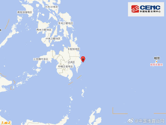 另據中國地震台網正式測定,10月10日9時43分,在菲律賓群島地區(北緯7.55度,東經127.00度)發生7.4級地震,震源深度50公里。